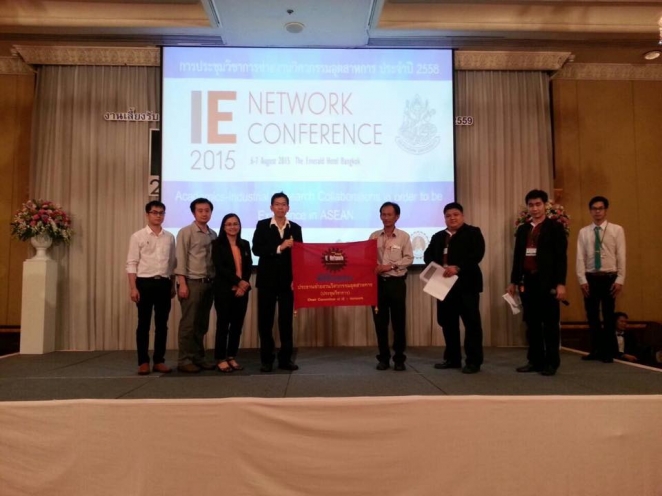 คณาจารย์และนักศึกษาภาควิชาวิศวกรรมอุตสาหการ ได้เข้าร่วมการเสนอผลงานวิชาการในการประชุมวิชาการข่ายงานวิศวกรรมอุตสาหการ ประจำปี 2558 (IE Network Conference 2015) จัดโดย ภาควิชาวิศวกรรมอุตสาหการและการจัดการ คณะวิศวกรรมศาสตร์และเทคโนโลยีอุตสาหกรรม มหาวิทยาลัยศิลปากร ภายใต้หัวข้อ “Academics – Industrial Research Collaborations in order to be Excellence in ASEAN” ณ โรงแรม ดิเอมเมอรัลด์ กรุงเทพฯ เมื่อวันที่ 6-7 สิงหาคม 2558 โดยงานนี้ผลงานของอาจารย์และนักศึกษา ได้รับรางวัลบทความดีเด่น จำนวน 4 บทความ ประกอบด้วย