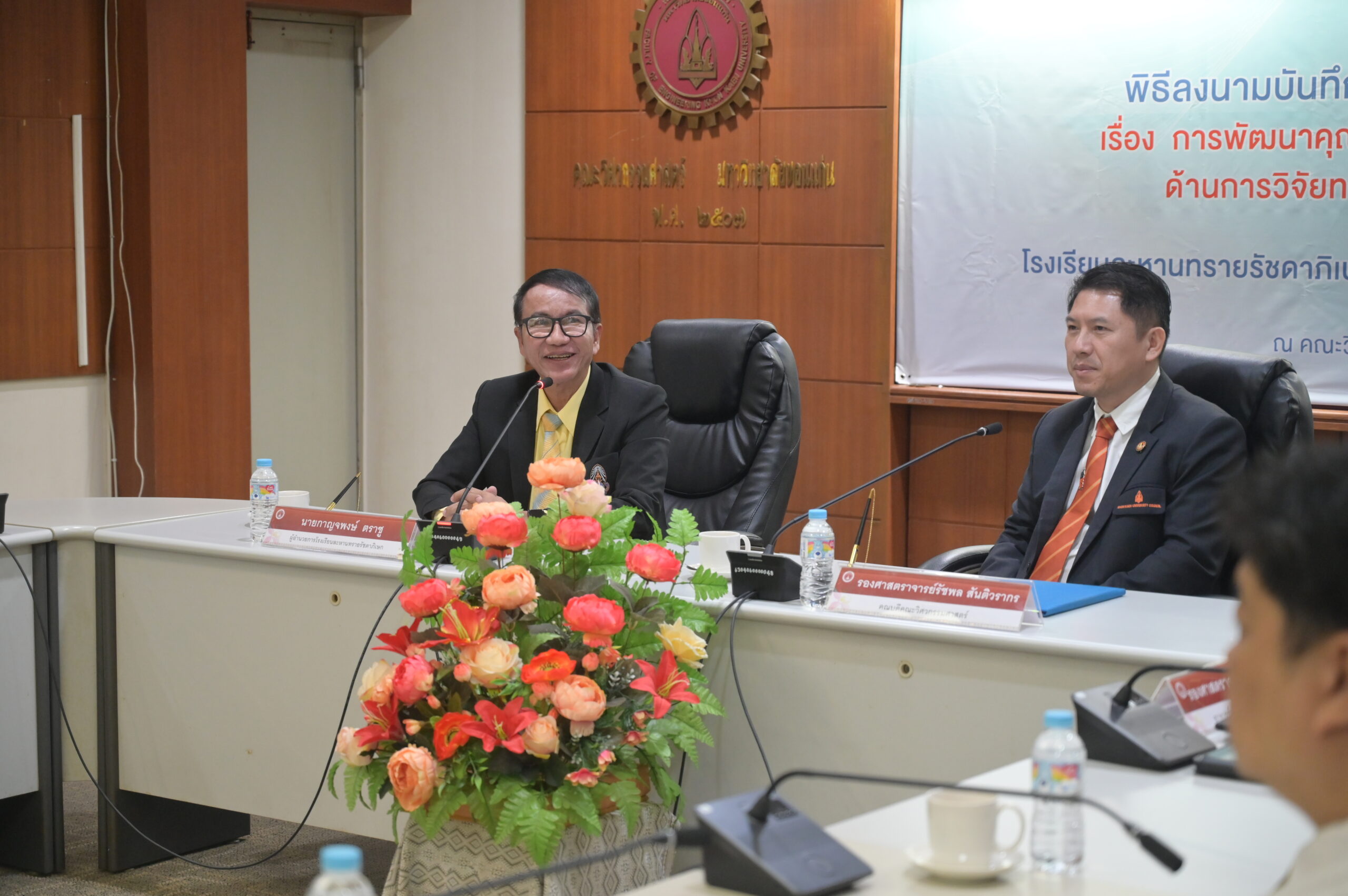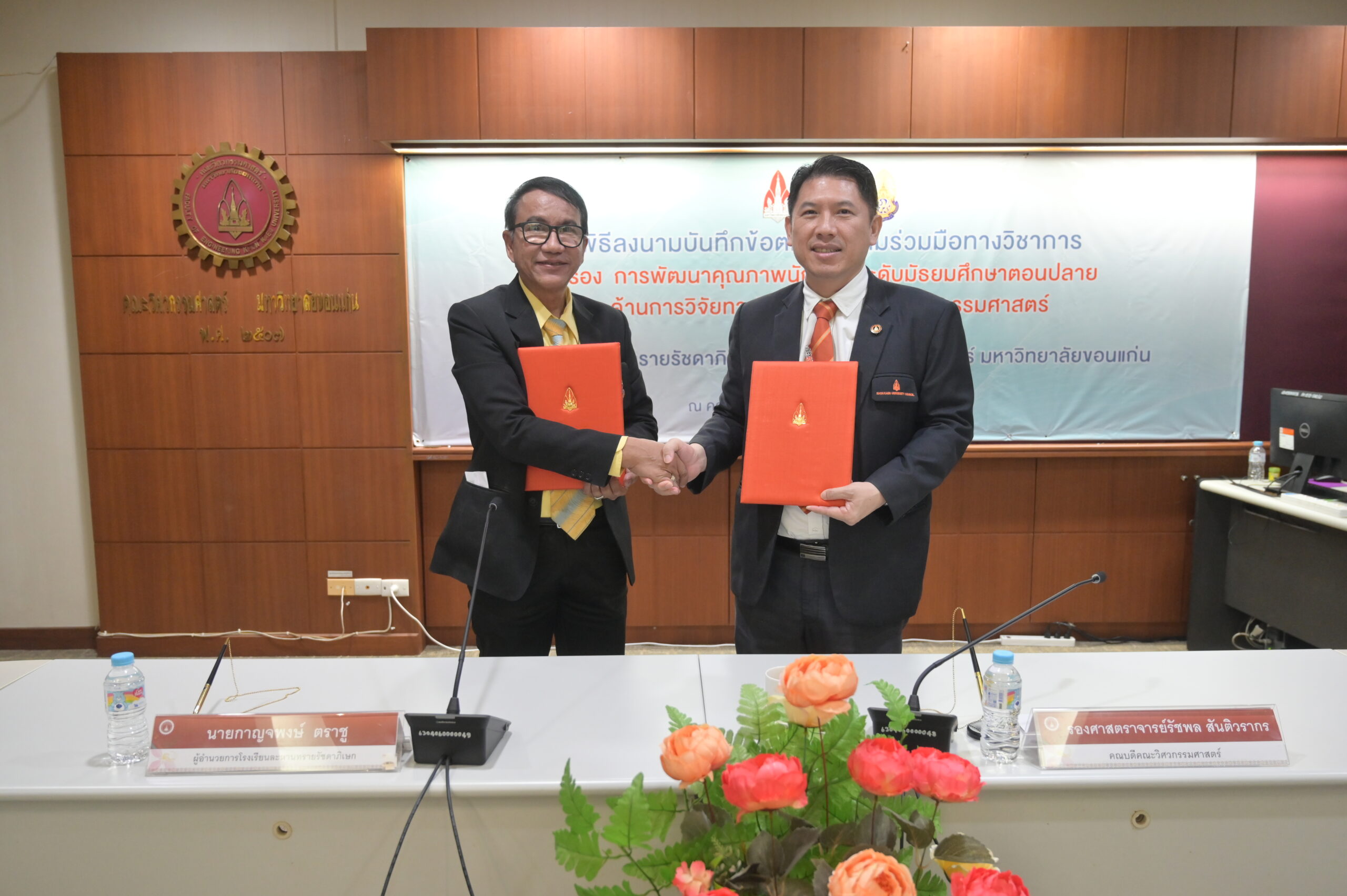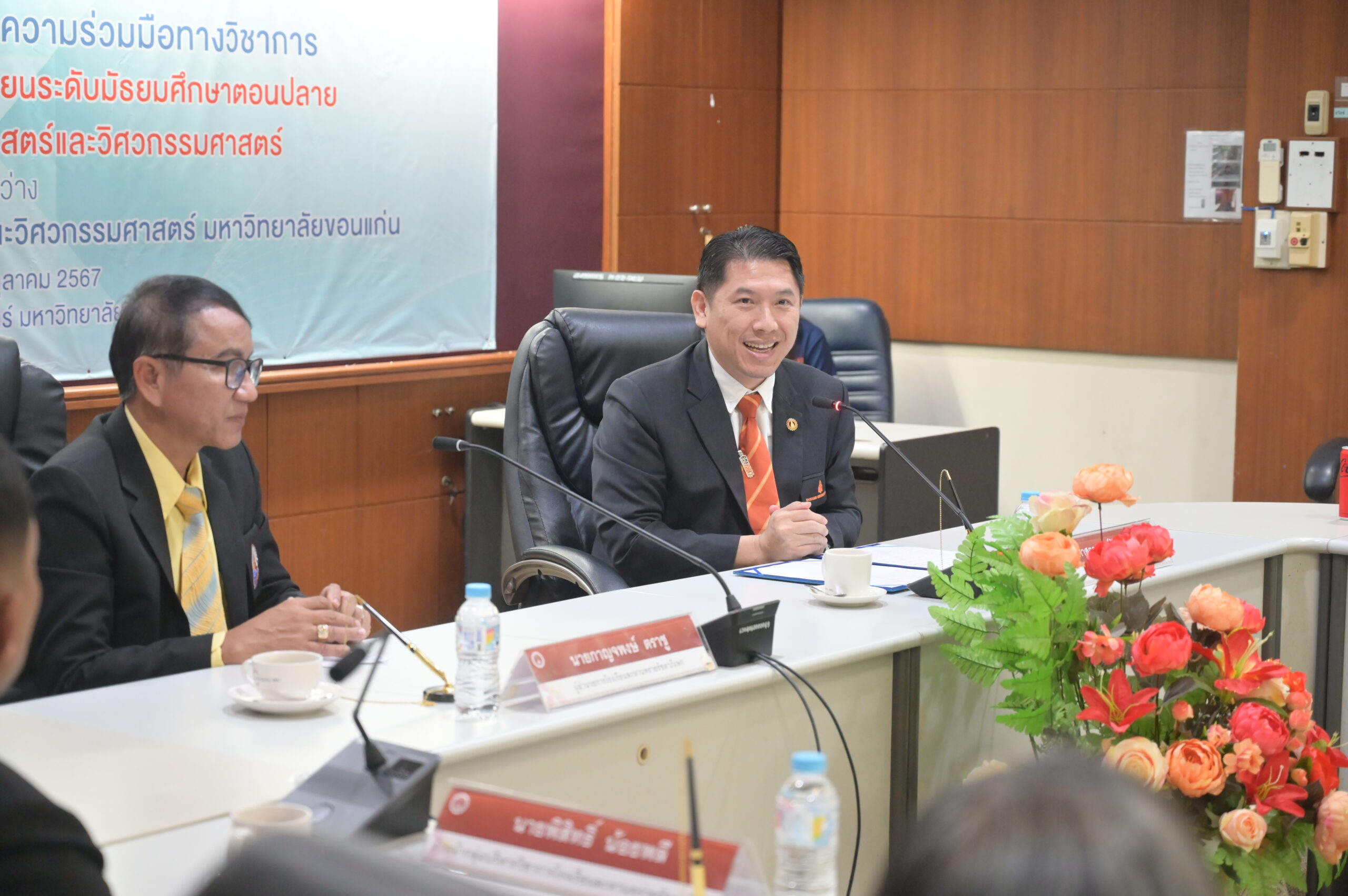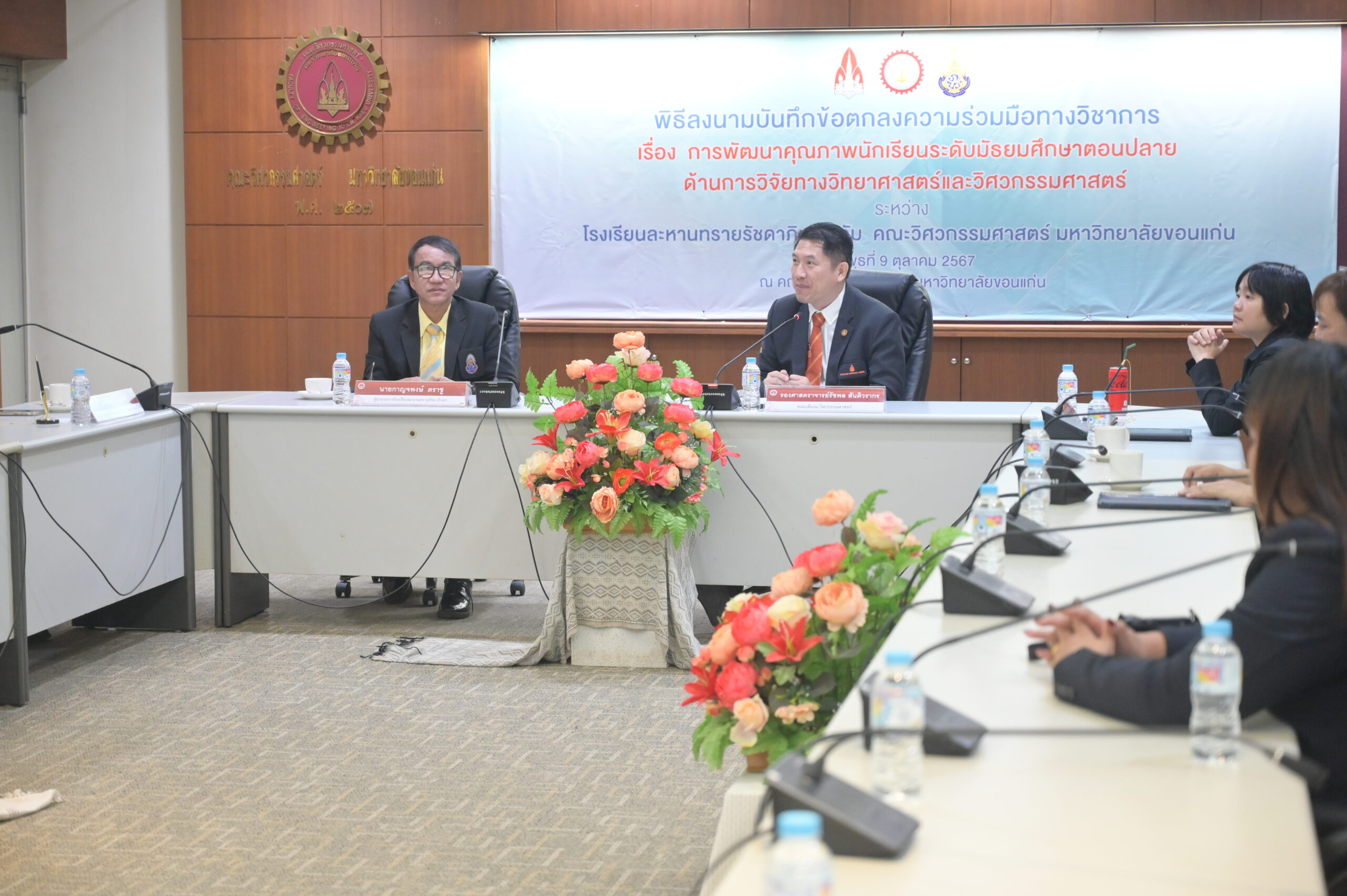 เมื่อวันพุธที่ 9 ตุลาคม 2567 คณะวิศวกรรมศาสตร์ มหาวิทยาลัยขอนแก่น ร่วมกับ โรงเรียนละหานทรายรัชดาภิเษก ได้จัดให้มีพิธีลงนามบันทึกข้อตกลงความร่วมมือทางวิชาการ เรื่อง การพัฒนาคุณภาพนักเรียนระดับมัธยมศึกษาตอนปลาย ด้านการวิจัยทางวิทยาศาสตร์และวิศวกรรมศาสตร์ ณ ห้องประชุม 1 ชั้น 8 ตึกเพียรวิจิตร คณะวิศวกรรมศาสตร์ โดยมี รองศาสตราจารย์รัชพล สันติวรากร คณบดีคณะวิศวกรรมศาสตร์ และคณาจารย์ของคณะฯ ร่วมให้การต้อนรับ อาจารย์กาญจนพงษ์ ตราชู ผู้อำนวยการโรงเรียนละหานทรายรัชดาภิเษก และคณาจารย์จากโรงเรียน พร้อมทั้งแขกผู้มีเกียรติที่มาร่วมงาน
