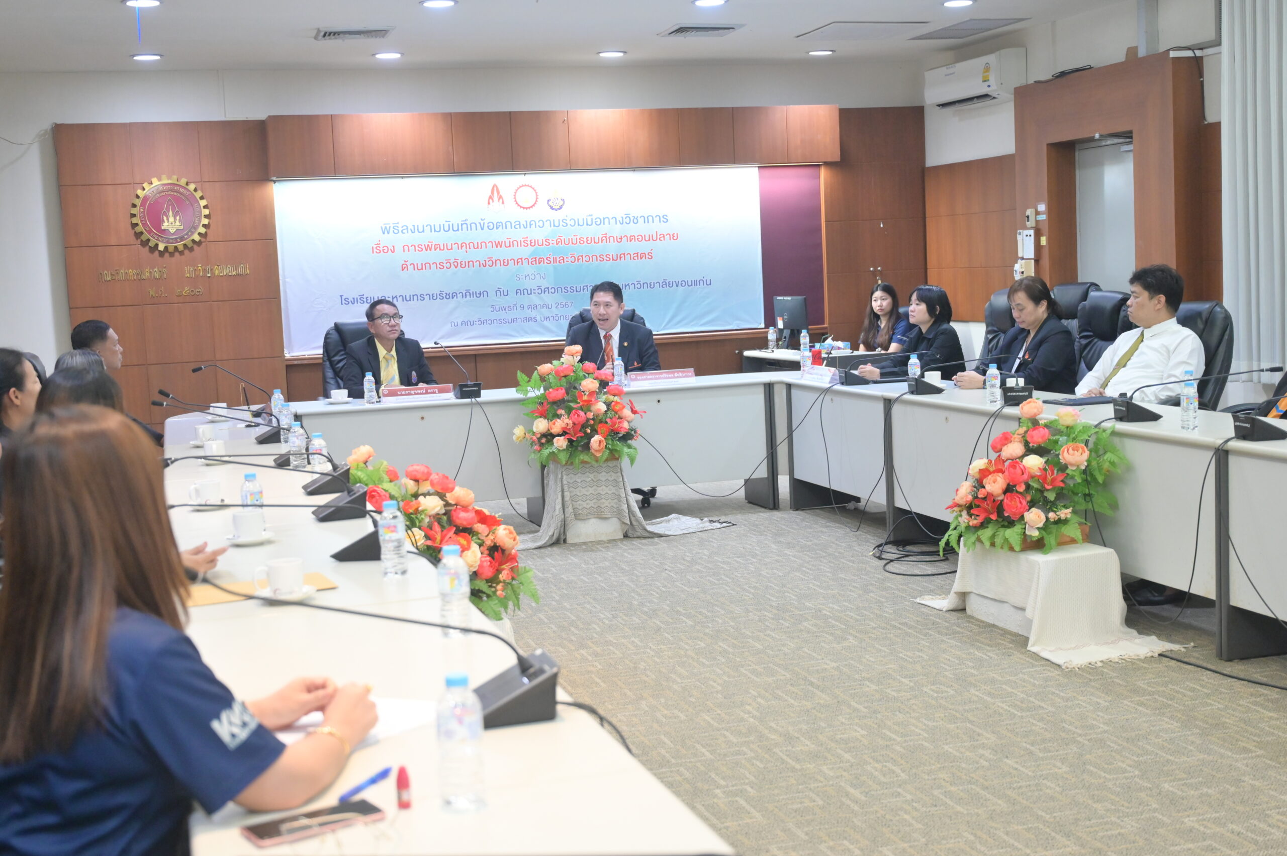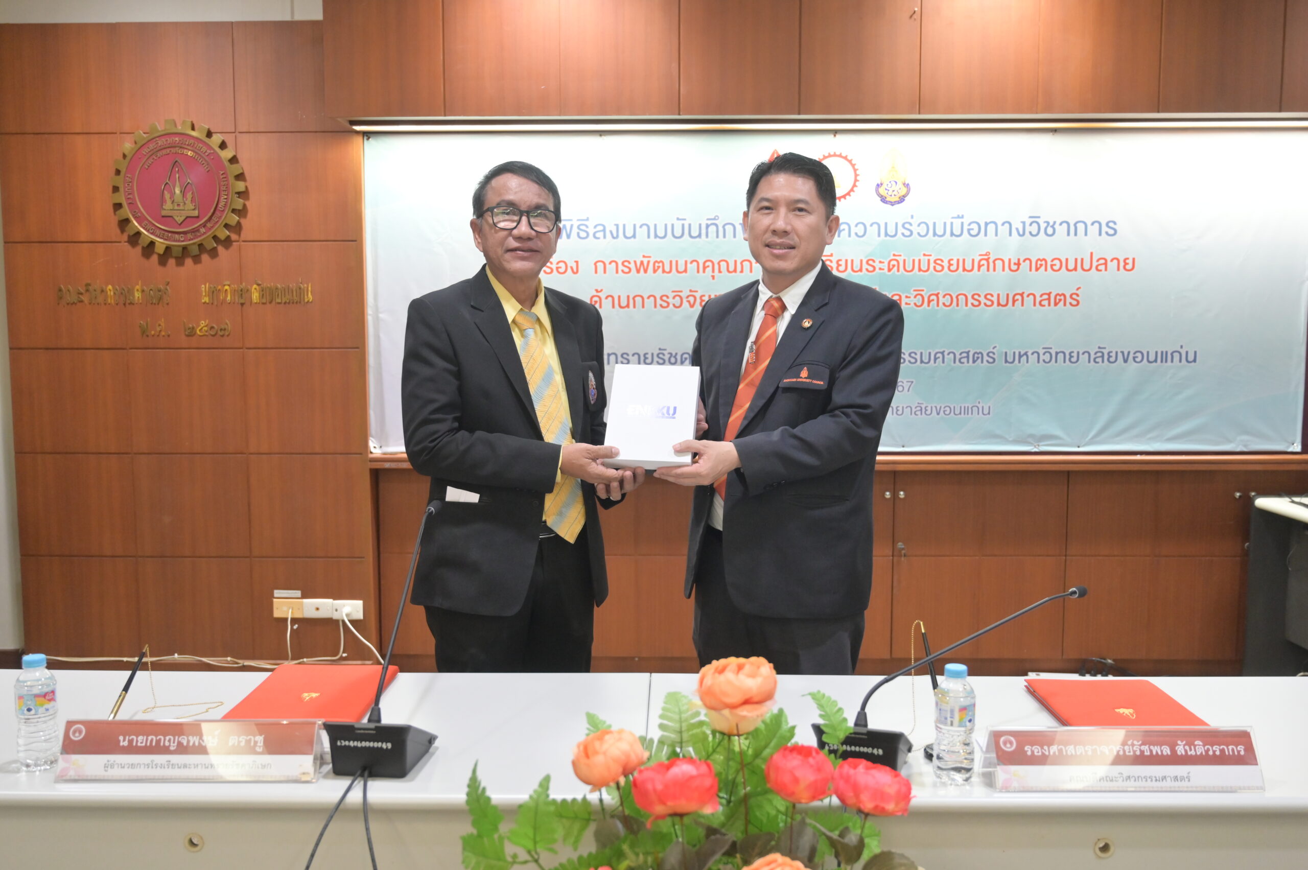 บันทึกข้อตกลงความร่วมมือทางวิชาการดังกล่าว มีวัตถุประสงค์ความร่วมมือเพื่อพัฒนาและส่งเสริมนักเรียนระดับมัธยมศึกษาตอนปลาย ให้ได้รับการเพิ่มพูนความรู้ รวมถึงการลงมือปฏิบัติจริง ด้านการวิจัยทางวิทยาศาสตร์และวิศวกรรมศาสตร์ พร้อมทั้งปลูกฝังให้มีเจตคติที่ดีต่อการทำวิจัยและเพื่อเป็นการยกระดับมาตรฐานการศึกษาในระดับมัธยมศึกษาตอนปลาย ซึ่งถือเป็นหนึ่งใน Mission อันสำคัญของคณะวิศวกรรมศาสตร์ มหาวิทยาลัยขอนแก่น ได้แก่ การวิจัยและสร้างองค์ความรู้และนวัตกรรมเพื่อตอบโจทย์ความต้องการของประเทศและสากล และนับเป็นหนึ่งใน Value ของคณะฯ จากอักษรย่อ SMART ได้แก่ ตัวอักษร S การอุทิศเพื่อสังคม และ ตัวอักษร T การมุ่งเน้นเทคโนโลยีและนวัตกรรม ซึ่งจาก Mission และ Value ดังกล่าวนี้ จะทำให้คณะฯ ก้าวไปสู่วิสัยทัศน์ที่ได้ตั้งไว้ในการจะเป็น“คณะวิศวกรรมศาสตร์ระดับโลกสำหรับทุกคน” โดยที่ผ่านมามีนักศึกษาระดับมัธยมศึกษาตอนปลาย แผนการเรียน วิทย์ – คณิต ของโรงเรียนฯ ที่มีศักยภาพในการเรียนและการทำวิจัยมาทำวิจัยนำร่องที่สาขาวิชาวิศวกรรมเคมี ภายใต้การดูแลให้คำปรึกษาโดย รศ.ดร.ยุวรัตน์ เงินเย็น ซึ่งผลจากการมาทำวิจัยในครั้งนั้น ทำให้มีผลงานวิจัยเผยแพร่ จำนวน 3 ผลงาน ได้แก่