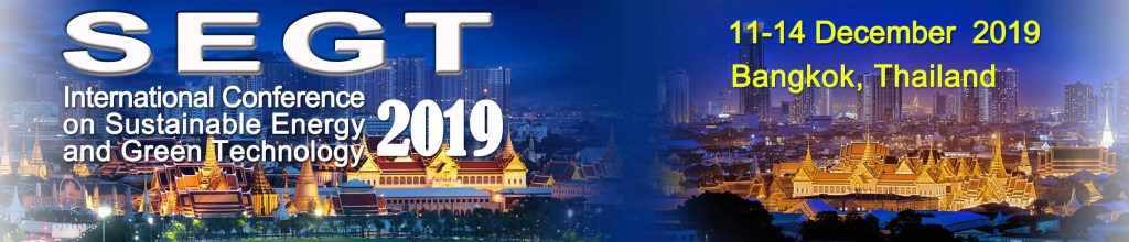 The International Conference on Sustainable Energy and Green Technology 2019 (SEGT 2019) will be held on 11-14 December 2019 in Bangkok. SEGT 2019. Accepted full papers will be published in conference proceedings. Selected papers will be published in special issue of renowned ISI-indexed journals i.e. International Journal of Hydrogen Energy (Q1; IF 4.229), International Journal of Energy Research (Q1; IF 3.009), Energies (Q2; IF 2.676) and recommended for publication in The Journal of the Chinese Society of Mechanical Engineers (Q4; IF 0.274). Best Paper Awards and Best Poster Awards will be presented.