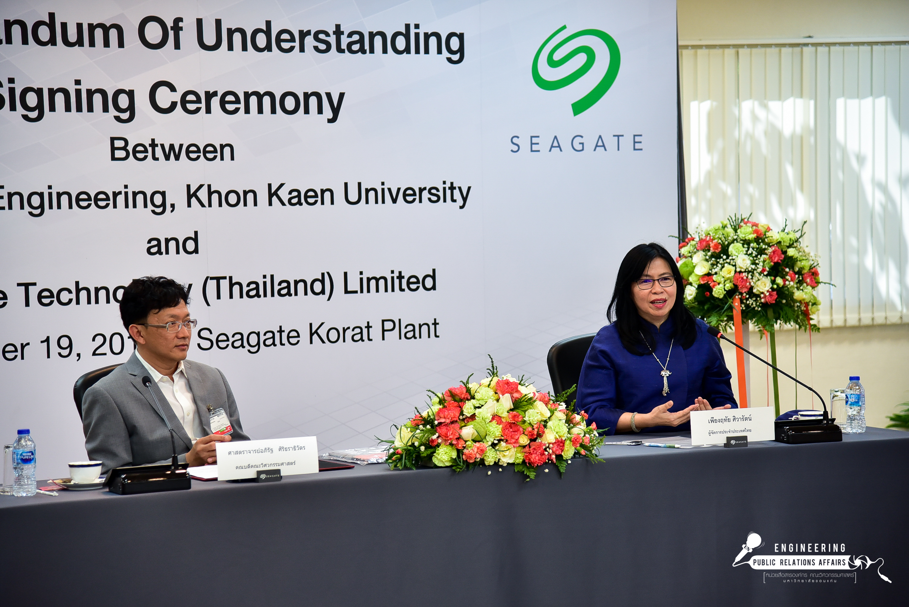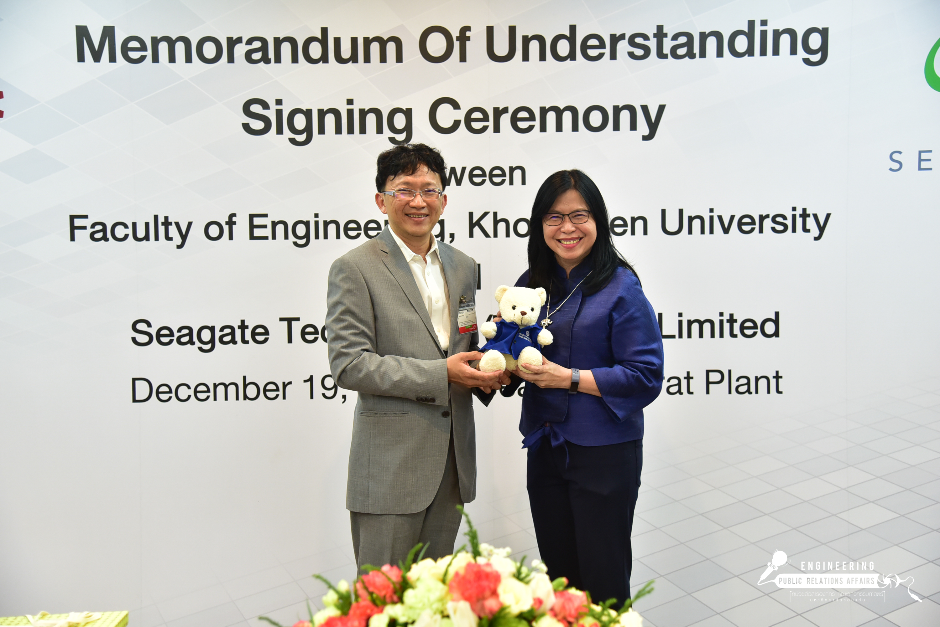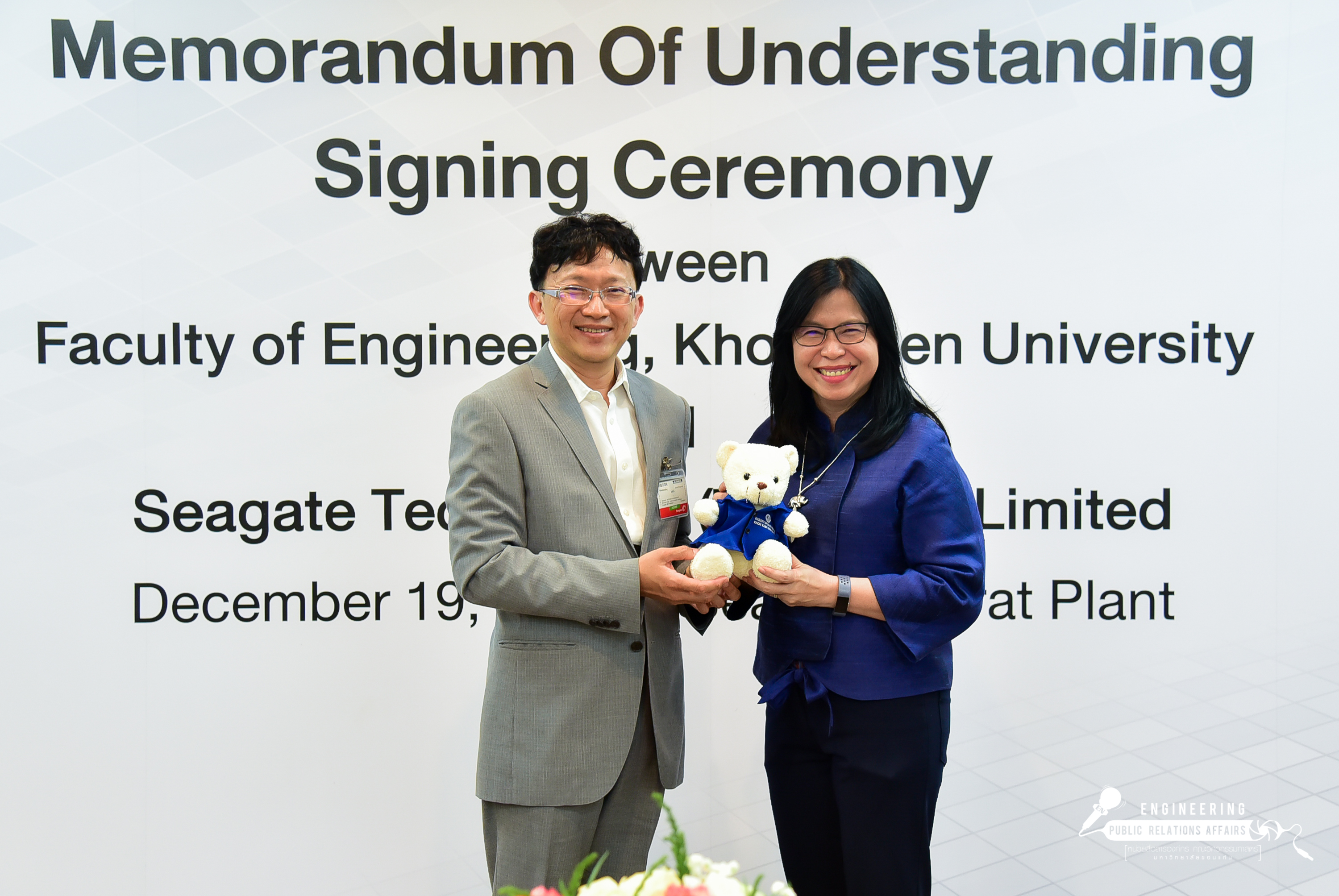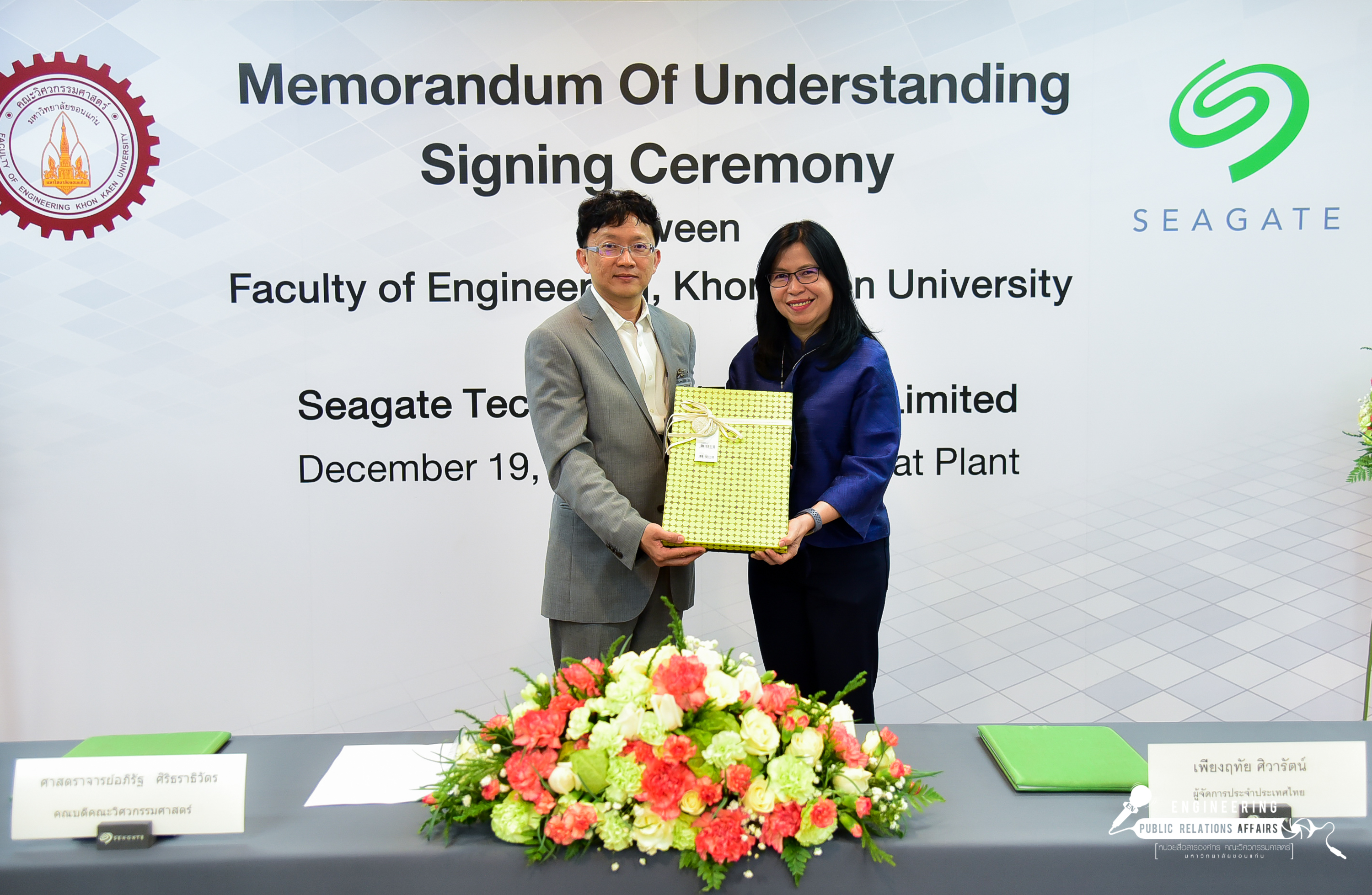 เมื่อวันที่ 19 ธันวาคม  2561 คณะวิศวกรรมศาสตร์ มหาวิทยาลัยขอนแก่น นำโดย ศ.ดร.อภิรัฐ ศิริธราธิวัตร คณบดี  พร้อมด้วย   ผศ.ดร.ขนิษฐา  คำวิลัยศักดิ์  รองคณบดีฝ่ายวิชาการ  รศ.ดร.ลัดดา  ตันวาณิชกุล  รองคณบดีฝ่ายวิเทศสัมพันธ์และสื่อสารองค์กร  ทีมผู้บริหาร  และคณาจารย์  ได้เดินทางไปยัง  บริษัท Seagate Technology Co, LTD  จังหวัดนครราชสีมา เพื่อจัดทำบันทึกข้อตกลงความร่วมมือทางวิชาการ โดยมีคุณเพียงฤทัย ศิวารัตน์ ผู้จัดการประจำประเทศไทยและรองประธานฝ่ายปฏิบัติการโรงงานซีเกทโคราช และคณะผู้บริหารของบริษัทฯ ให้การต้อนรับ และร่วมลงนามในบันทึกฯ  โดยในบันทึกฯนี้มีวัตถุประสงค์มีวัตถุประสงค์เพื่อขยายความร่วมมือในการส่งนักศึกษาในการทำสหกิจศึกษาและการฝึกงาน รวมถึงงานวิจัย กิจกรรมทางวิชาการด้านอื่น ๆ ที่จะเกิดขึ้นในอนาคต
