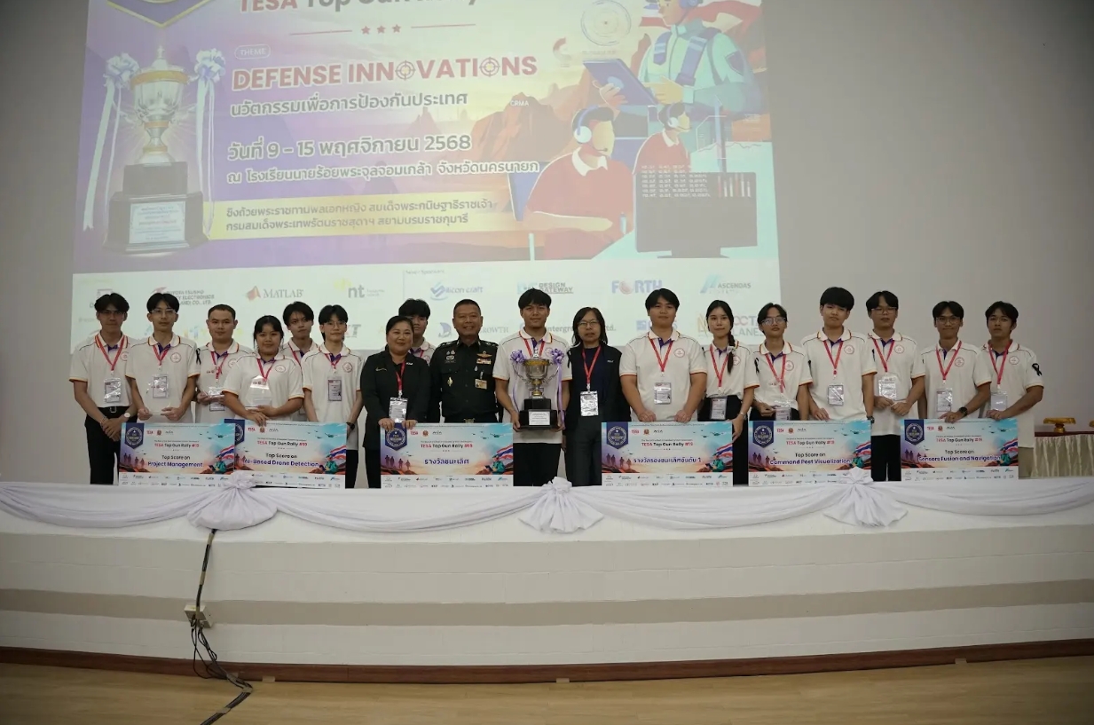 ได้รับ”รางวัลชนะเลิศ“ การประชันทักษะทางด้านระบบสมองกลฝังตัว ครั้งที่ 19 (TESA Top Gun Rally 2025) พร้อมถ้วยพระราชทาน พลเอกหญิง สมเด็จพระกนิษฐาธิราชเจ้า กรมสมเด็จพระเทพรัตนราชสุดา ฯ สยามบรมราชกุมารี ซึ่งจัดโดยสมาคมสมองกลฝังตัวไทย (Thai Embedded System Association: TESA) ที่จัดขึ้นระหว่างวันที่ 9–15 พฤศจิกายน 2568 ณ โรงเรียนนายร้อยพระจุลจอมเกล้า