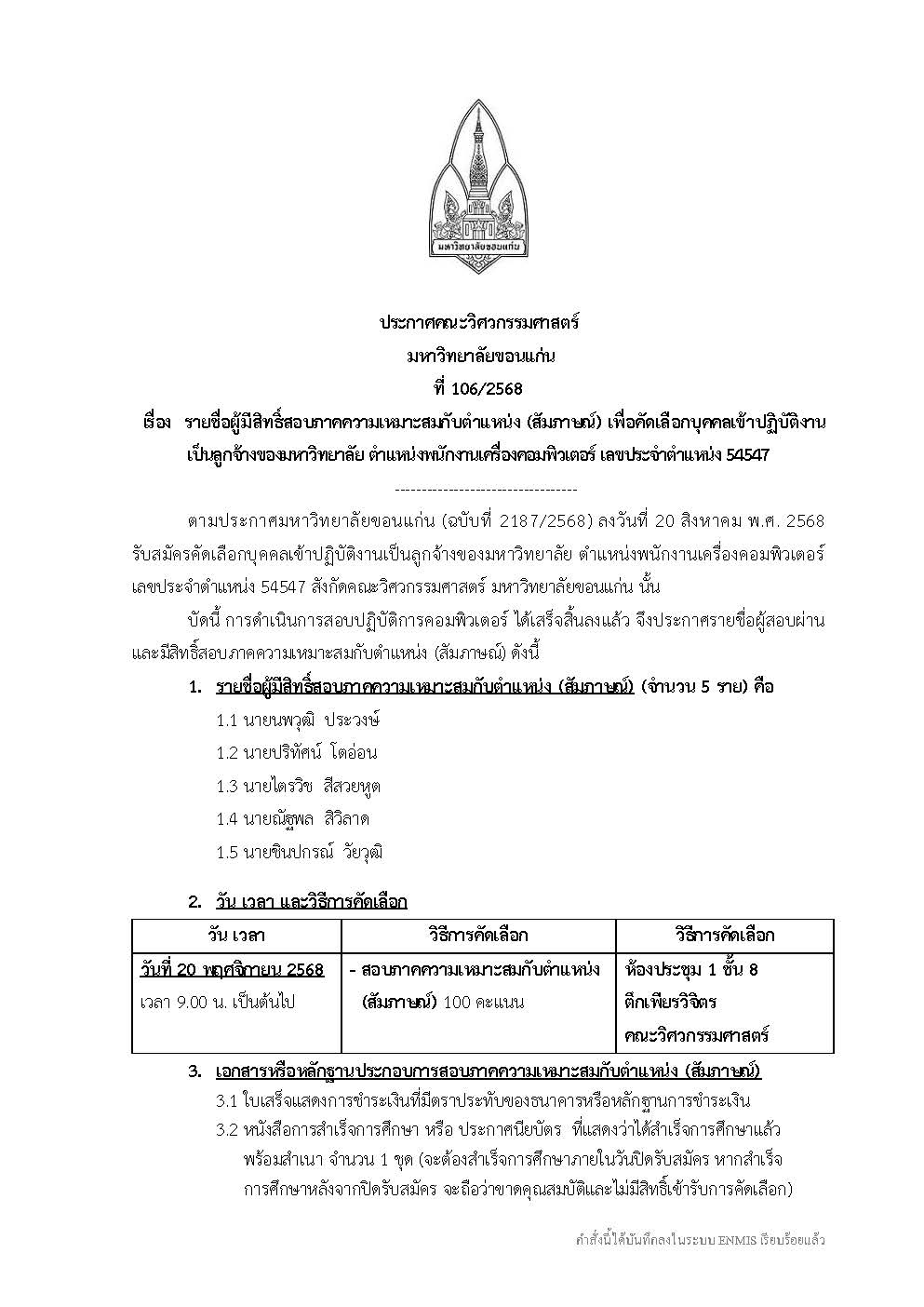 ประกาศรายชื่อผู้สอบสัมภาษณ์ ตำแหน่งพนักงานเครื่องคอมพิวเตอร์ เลขประจำตำแหน่ง 54547 By ฝ่ายสื่อสารองค์กร October 24, 2025 In this article ข่าวคณะ