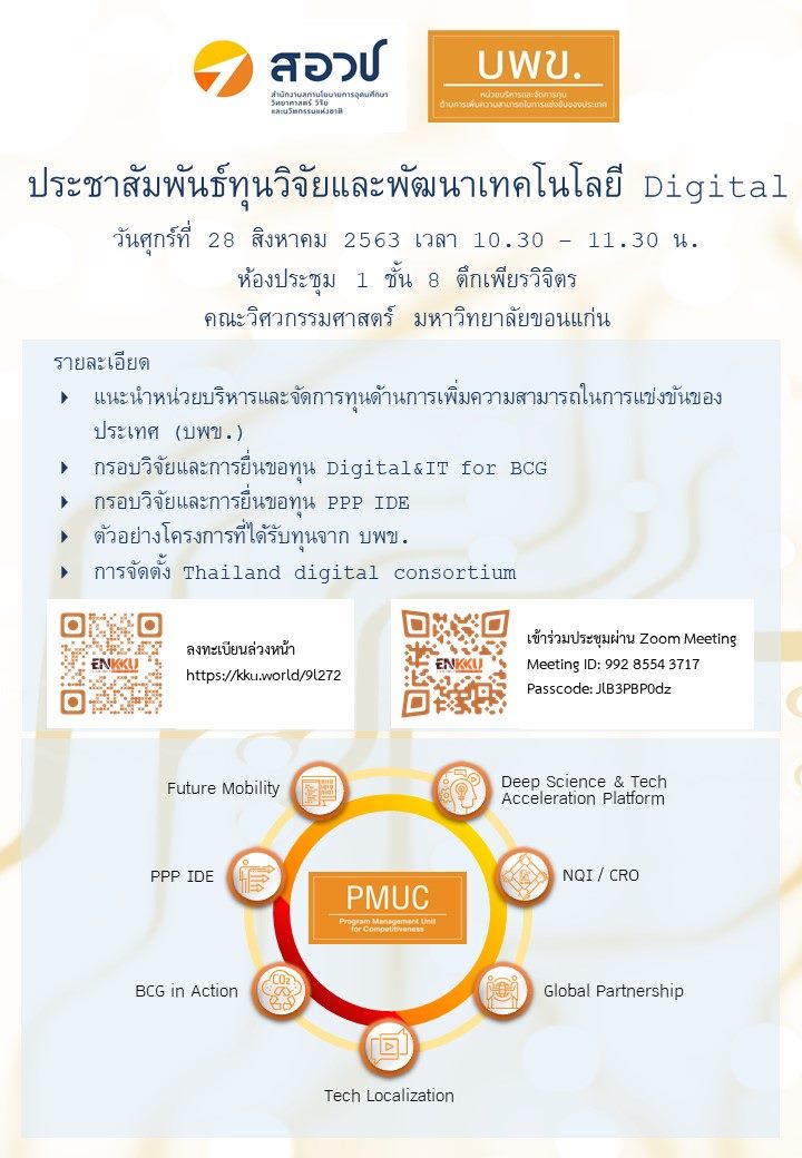 [ประชาสัมพันธ์] ขอเชิญเข้าร่วมการประชาสัมพันธ์ทุนวิจัยและพัฒนาเทคโนโลยี Digital