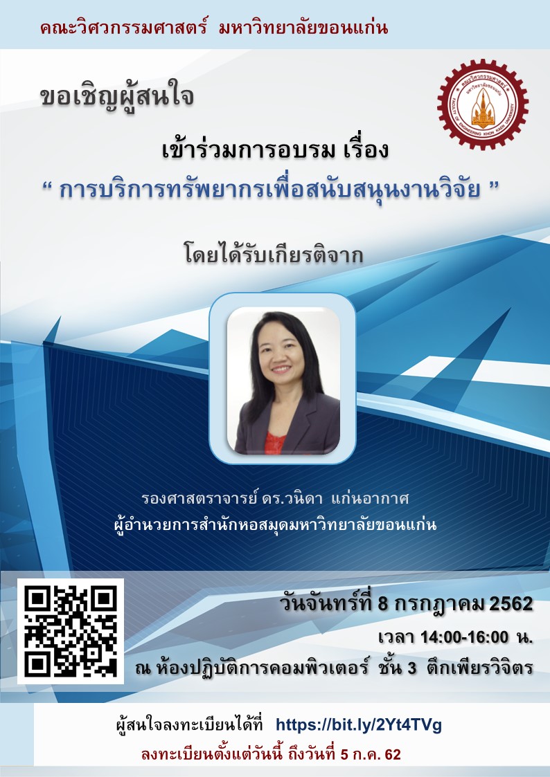 ประชาสัมพันธ์ โครงการอบรมเรื่อง การบริการทรัพยากรเพื่อสนับสนุนงานวิจัย