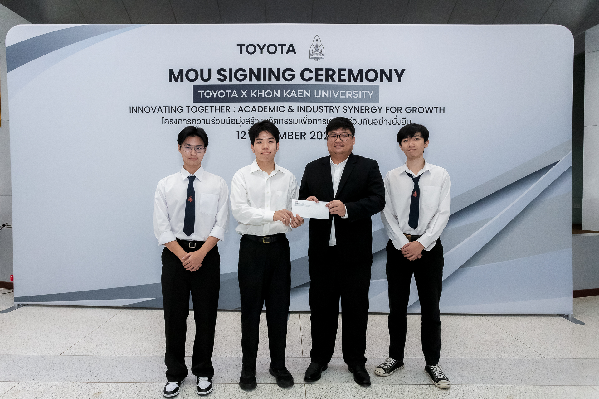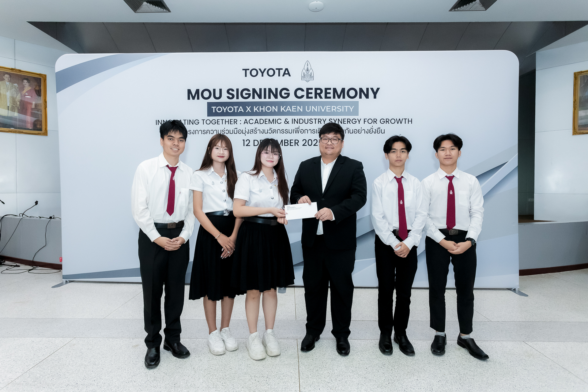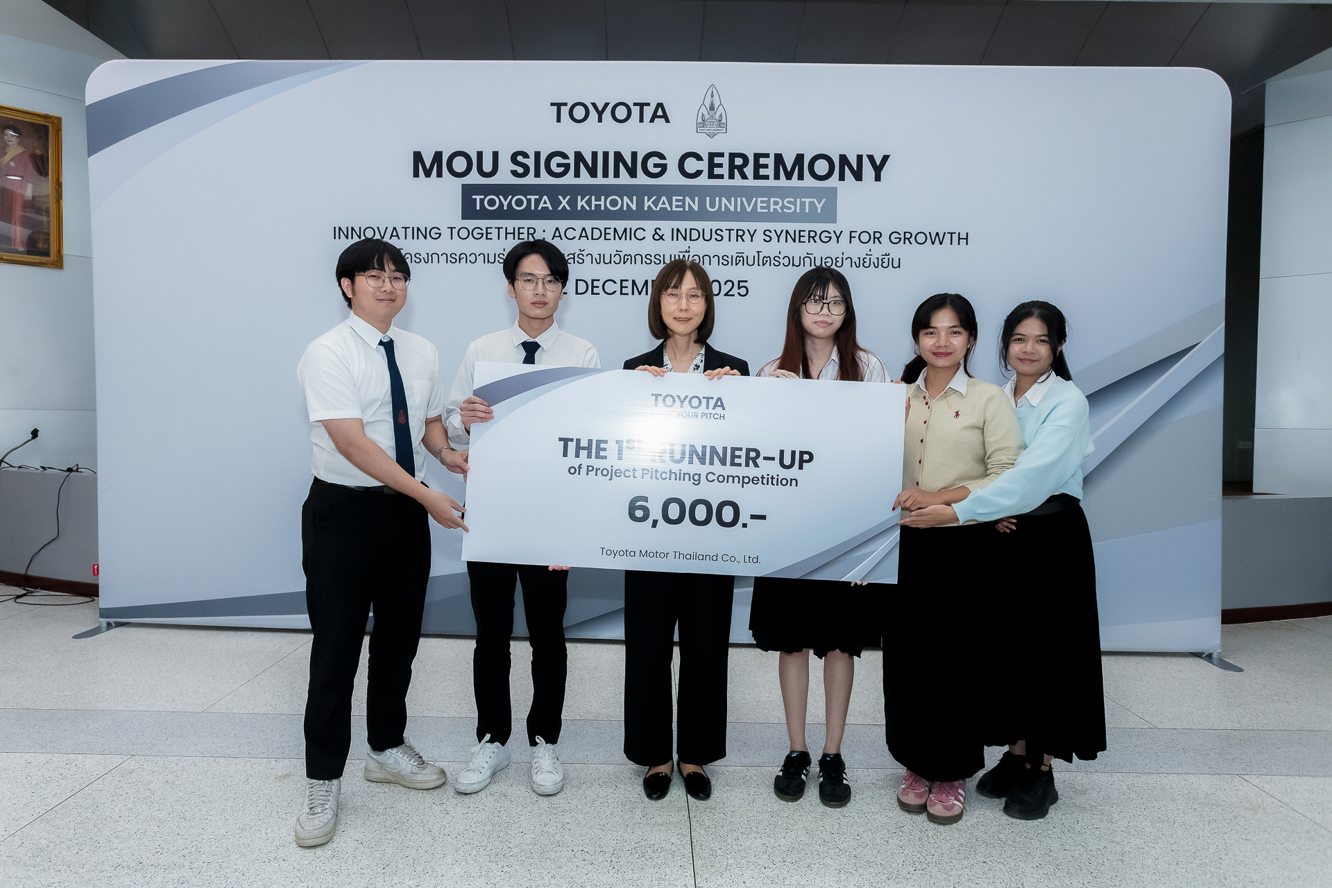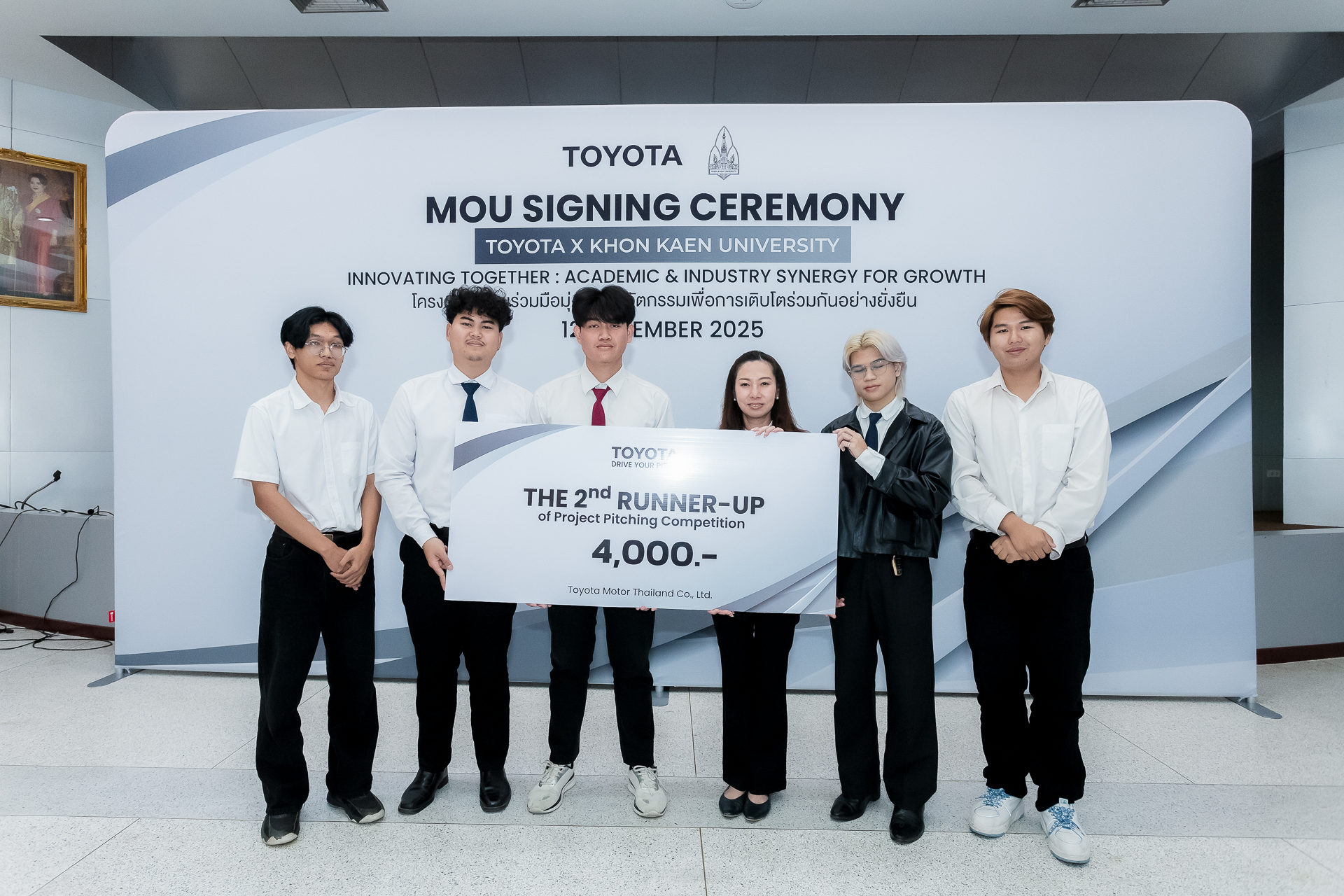 เมื่อ 12 ธันวาคม 2568 ที่ผ่านมา คณะวิศวกรรมศาสตร์ มหาวิทยาลัยขอนแก่น ร่วมกับ บริษัท โตโยต้า มอเตอร์ ประเทศไทย จำกัด จัดพิธีลงนามบันทึกความเข้าใจความร่วมมือทางวิชาการ (MOU) ภายใต้แนวคิด “Innovating Together: Academic & Industry Synergy for Growth” เพื่อส่งเสริมการเรียนรู้และการแลกเปลี่ยนองค์ความรู้ระหว่างภาคการศึกษาและภาคอุตสาหกรรม โดยมีเป้าหมายหลักในการสร้างนวัตกรรมและการพัฒนาทรัพยากรมนุษย์เพื่อการเติบโตอย่างยั่งยืน พิธีลงนามดังกล่าวจัดขึ้น ณ ห้องสัมมนา 1 ชั้น 9 ตึกเพียรวิจิตร คณะวิศวกรรมศาสตร์ มหาวิทยาลัยขอนแก่น โดยได้รับเกียรติจาก รศ. รัชพล สันติวรากร คณบดีคณะวิศวกรรมศาสตร์ และ คุณสุรภูมิ อุดมวงศ์ รองกรรมการผู้จัดการใหญ่ บริษัท โตโยต้า มอเตอร์ ประเทศไทย จำกัด เป็นผู้ลงนามความร่วมมือ ท่ามกลางคณะผู้บริหาร คณาจารย์ และนักศึกษาที่เข้าร่วมเป็นสักขีพยาน รศ. รัชพล สันติวรากร คณบดีคณะวิศวกรรมศาสตร์ กล่าวต้อนรับและเน้นย้ำถึงวิสัยทัศน์ของคณะฯ ที่มุ่งสู่การเป็น “Global Engineering for All” หรือคณะวิศวกรรมศาสตร์ระดับโลกสำหรับทุกคน โดยระบุว่าความร่วมมือกับภาคเอกชนที่เข้มแข็งอย่างโตโยต้า จะเป็นแรงขับเคลื่อนสำคัญในการผลิตบัณฑิตที่มีคุณภาพ และสร้างสรรค์นวัตกรรมที่ตอบโจทย์ความต้องการของประเทศและสังคมโลกได้จริง ทางด้าน คุณสุรภูมิ อุดมวงศ์ รองกรรมการผู้จัดการใหญ่ บริษัท โตโยต้า มอเตอร์ ประเทศไทย จำกัด ได้กล่าวถึงความตั้งใจของโตโยต้าที่ต้องการสร้างสะพานเชื่อมระหว่างประสบการณ์จริงในโลกธุรกิจกับพลังความคิดสร้างสรรค์ของคนรุ่นใหม่ โดยเชื่อมั่นว่า “ห้องเรียนที่ดีที่สุดคือการลงมือทำ” ซึ่งความร่วมมือครั้งนี้ไม่ได้เป็นเพียงการเชื่อมโยงภาคอุตสาหกรรมเข้ากับสถาบันการศึกษา แต่เป็นการปลดล็อกศักยภาพของนักศึกษาเพื่อขับเคลื่อนอนาคตของอุตสาหกรรมยานยนต์ไทย