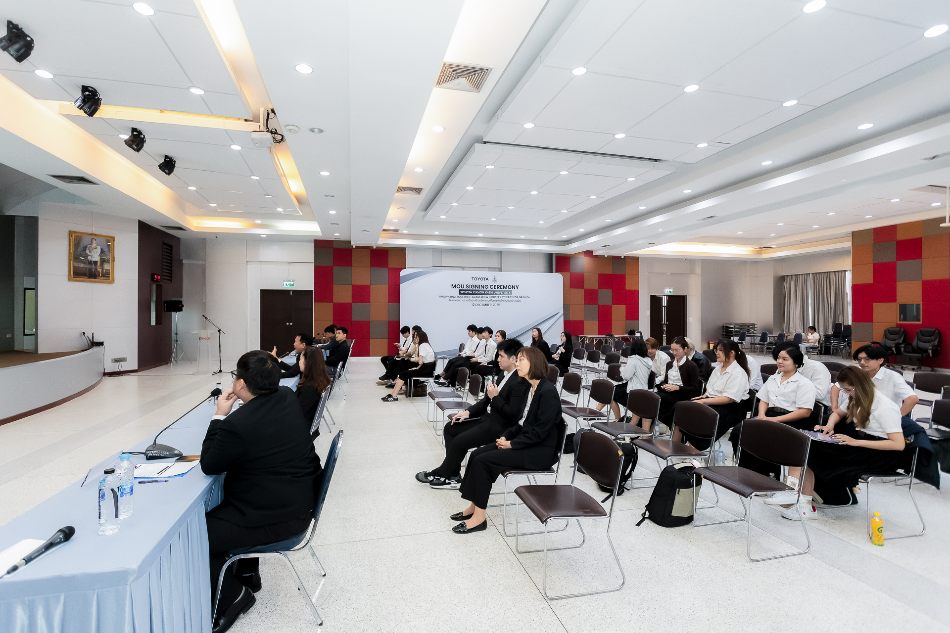 สาระสำคัญของความร่วมมือในครั้งนี้ ครอบคลุมกิจกรรมที่หลากหลายเพื่อพัฒนานักศึกษา ได้แก่: โครงการฝึกงาน (Internship Program): เปิดโอกาสให้นักศึกษาได้เรียนรู้จากการทำงานจริง และสัมผัสวัฒนธรรมการทำงานแบบมืออาชีพ * *การถ่ายทอดองค์ความรู้ (Knowledge Sharing):* การบรรยายพิเศษโดยผู้เชี่ยวชาญจากโตโยต้า เพื่อแบ่งปันแนวคิดการทำงานระดับโลก เช่น ระบบ “ไคเซ็น” (Kaizen) และ “วิถีแห่งโตโยต้า” (Toyota Way) * *การทำโครงงานร่วมกัน (Collaborative Projects):* การผนึกกำลังทำกิจกรรมเพื่อสังคม (CSR), การพัฒนาชุมชน และการสร้างสรรค์โมเดลธุรกิจใหม่ ๆ * *การเยี่ยมชมโรงงาน (Plant & Office Visits):* เปิดโอกาสให้นักศึกษาและคณาจารย์ได้เห็นภาพรวมของอุตสาหกรรมยานยนต์อย่างครบวงจร ความร่วมมือครั้งนี้นับเป็นก้าวสำคัญที่ช่วยเสริมสร้างทักษะ (Upskill) และเตรียมความพร้อมให้นักศึกษาก้าวเข้าสู่ตลาดแรงงานได้อย่างมีคุณภาพ พร้อมทั้งเปิดโอกาสในการร่วมงานกับบริษัทชั้นนำอย่างโตโยต้าในอนาคต โดยทั้งสององค์กรมุ่งหวังว่าการผนึกกำลังครั้งนี้จะจุดประกาย “นวัตกรรม” ที่นำไปสู่ความสำเร็จที่ยั่งยืนของทั้งสองฝ่ายและประเทศไทยต่อไป
