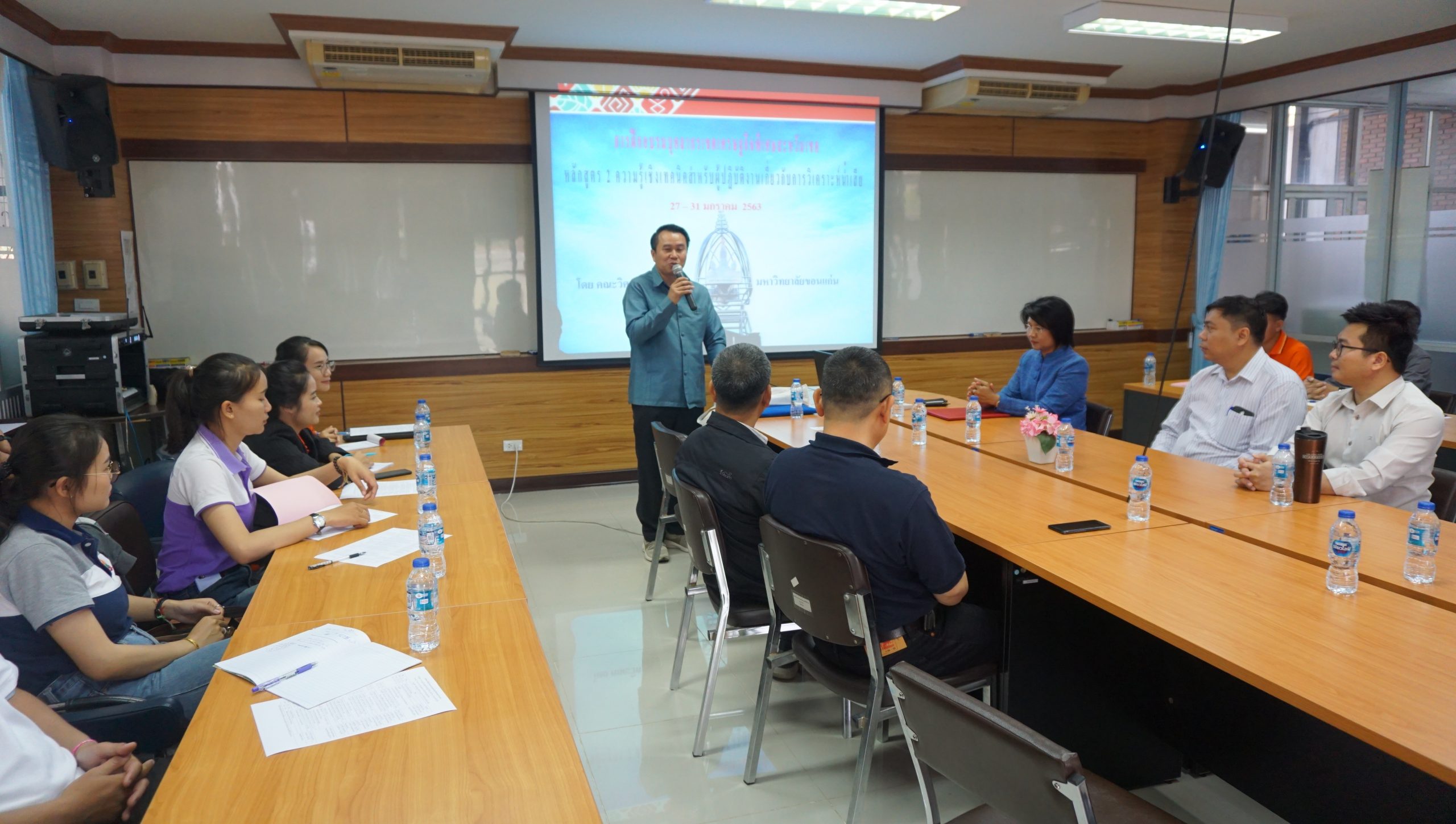 คณะวิศวฯ อบรมพัฒนาศักยภาพบุคลากรเขตเศรษฐกิจพิเศษสะหวันเซโน คณะวิศวกรรมศาสตร์ มหาวิทยาลัยขอนแก่น ได้ดำเนินโครงการพัฒนาศักยภาพด้านการบริหารจัดการสิ่งแวดล้อมของเขตเศรษฐกิจพิเศษสะหวัน-เซโน หลักสูตร 2 เรื่อง ความรู้เชิงเทคนิคสำหรับผู้ปฏิบัติงานเกี่ยวกับการวิเคราะห์น้ำเสีย” ระหว่างวันที่ 27 – 31 มกราคม 2563 ณ สาขาวิชาวิศวกรรมสิ่งแวดล้อม โดยมีหัวหน้าส่วนราชการและภาคเอกชนจากเขตเศรษฐกิจพิเศษสะหวัน-เซโน อาทิ ท่านทองใส ชัยยะวงศ์คำดี หัวหน้าคณะบริหารเขตเศรษฐกิจพิเศษสะหวัน-เซโน คุณเอกสิทธิ์ เมธาถิระสวัสดิ์ คณะกรรมการชี้นำหน่วยคุ้มครองสิ่งแวดล้อมและควบคุมมลพิเศษ เข้าร่วมในการอบรมครั้งนี้ด้วย