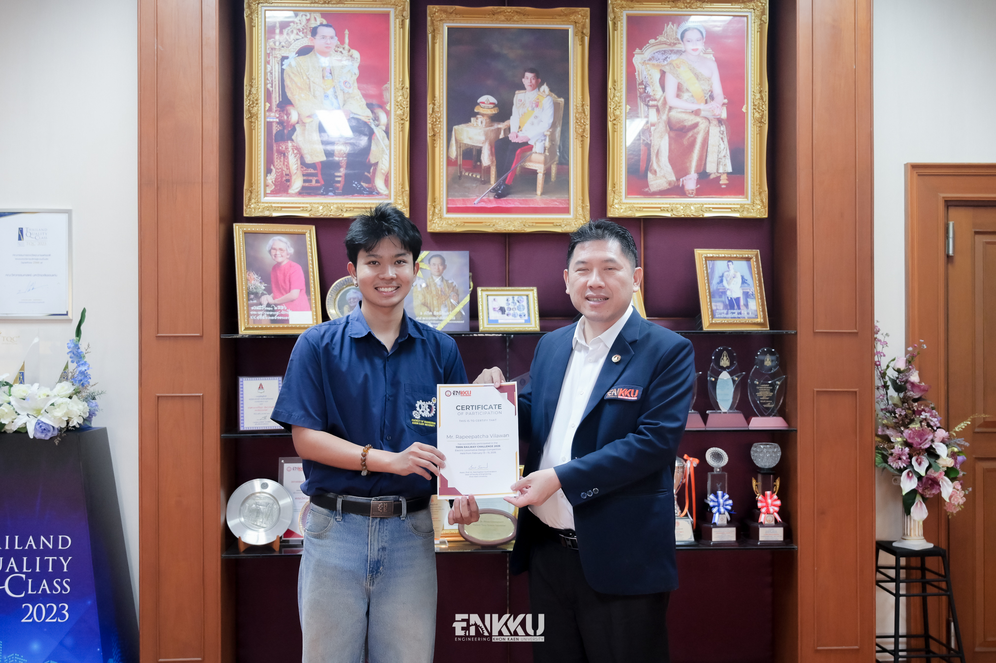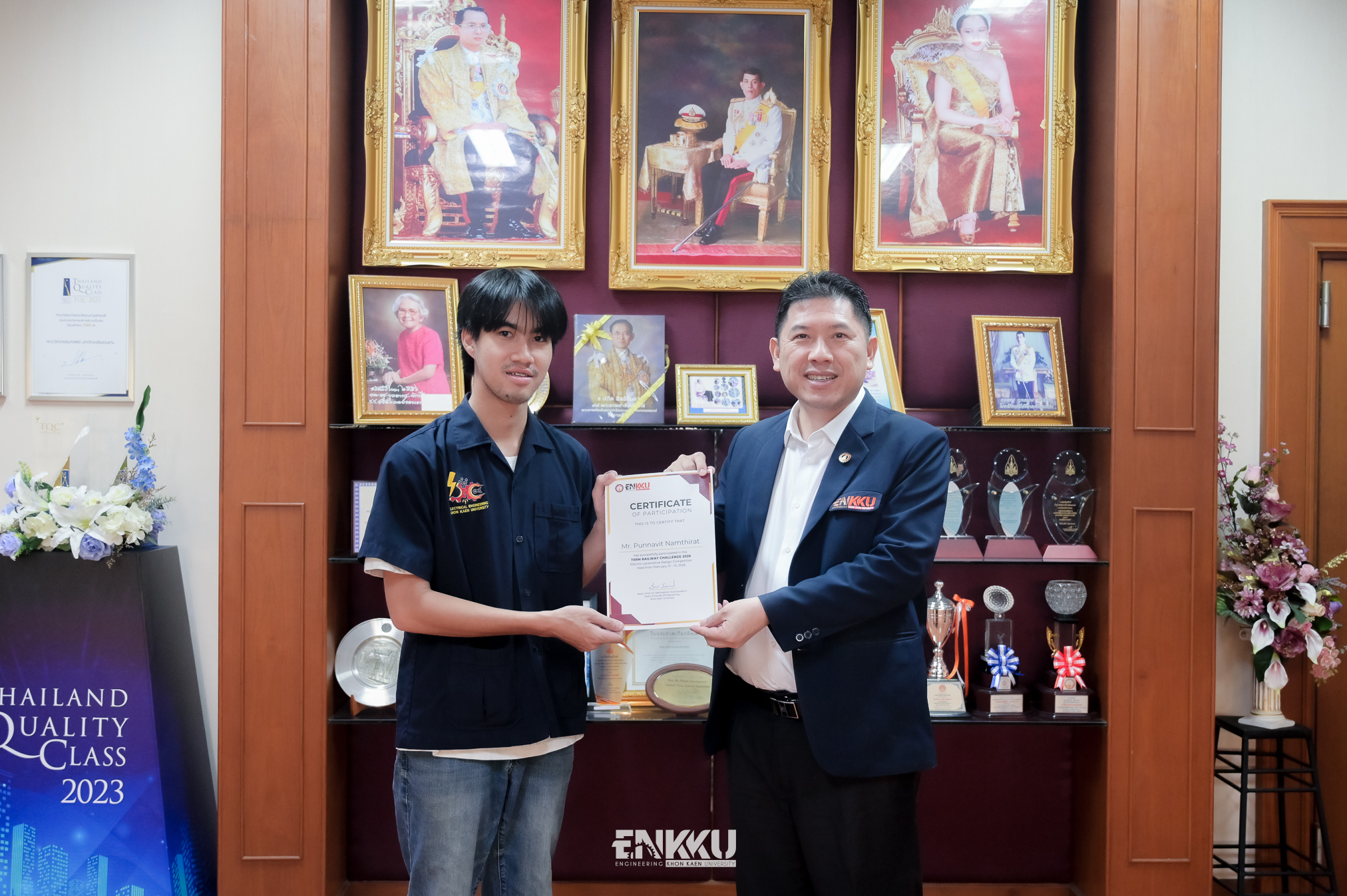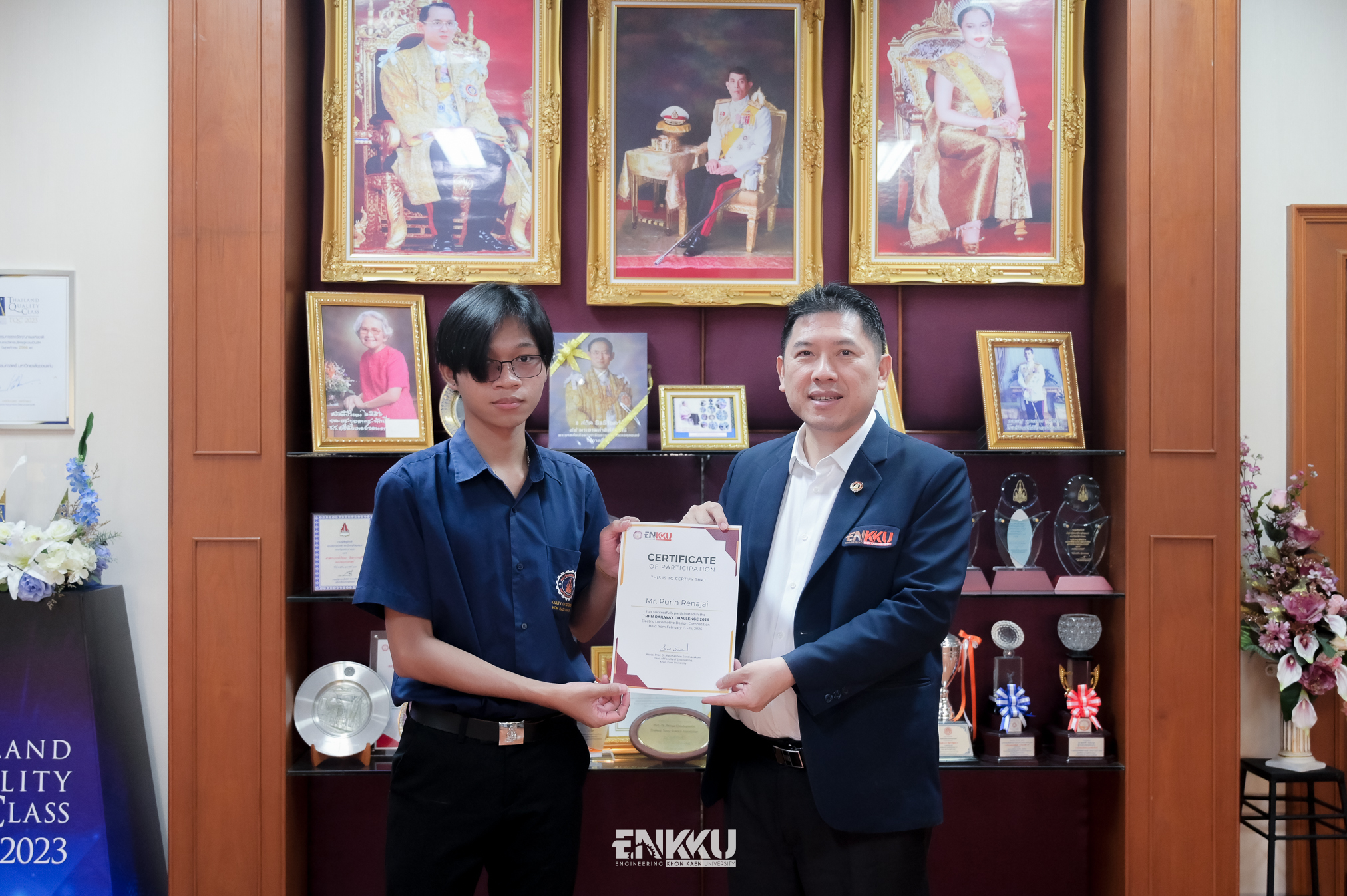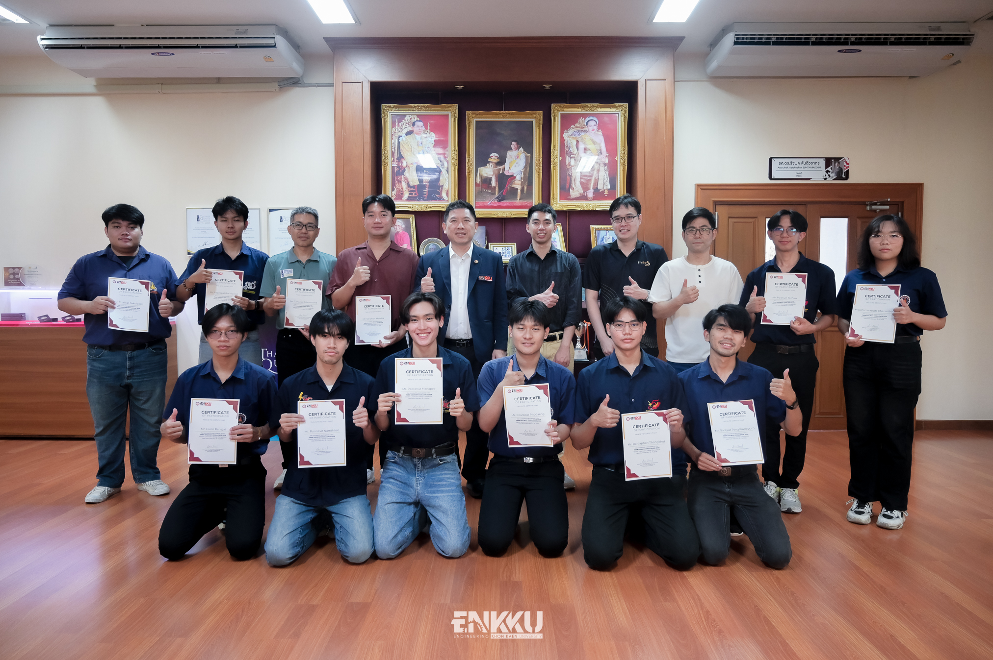 รศ.ดร.รัชพล สันติวรากร คณบดีคณะวิศวกรรมศาสตร์ ได้ให้เกียรติมอบเกียรติบัตรแสดงความยินดีแก่นักศึกษาผู้เข้าร่วมโครงการ พร้อมกล่าวชื่นชมในความมุ่งมั่นว่า การส่งเสริมให้นักศึกษาลงมือปฏิบัติจริงในเวทีระดับสากลเช่นนี้ เป็นหัวใจสำคัญของการสร้าง “วิศวกรยุคใหม่” ที่ไม่ได้มีเพียงความรู้ในตำรา แต่มีความคล่องตัว (Agility) และสามารถประยุกต์ใช้เทคโนโลยีเพื่อตอบโจทย์อุตสาหกรรมระบบขนส่งทางรางที่กำลังพัฒนาอย่างก้าวกระโดด ซึ่งสอดคล้องกับแนวทางการสร้างวิศวกรรมระดับโลกสำหรับทุกคน