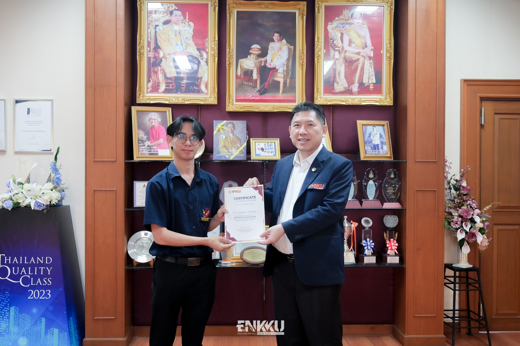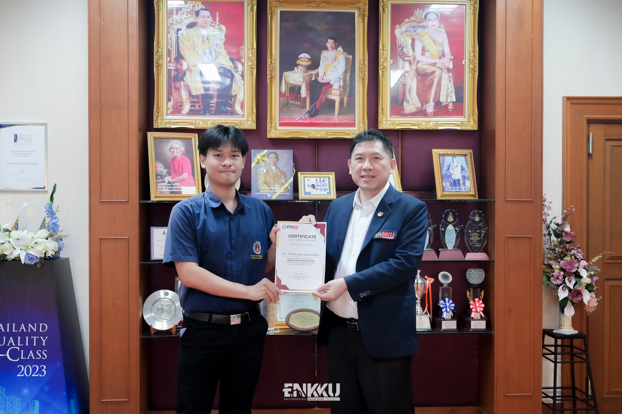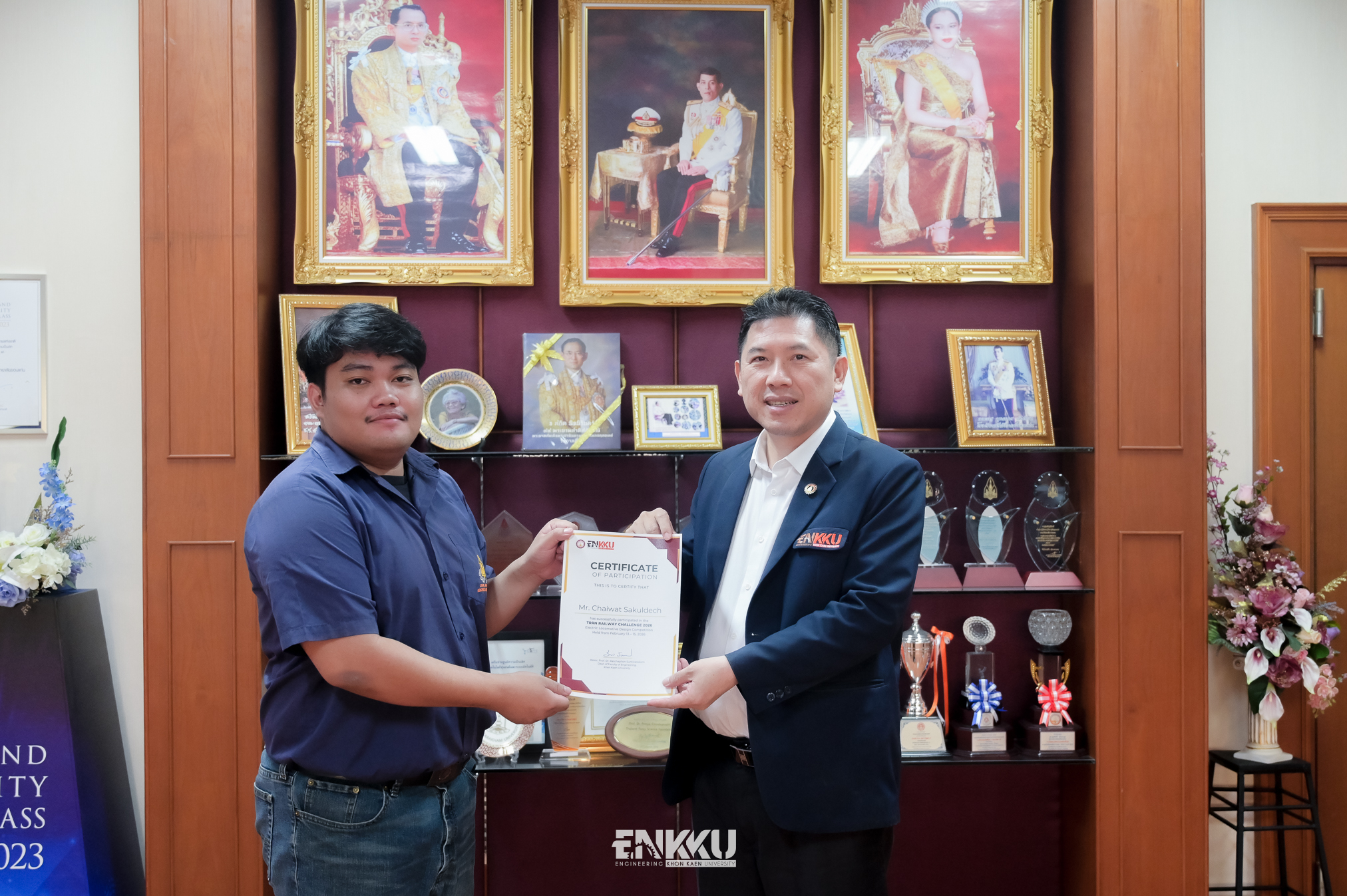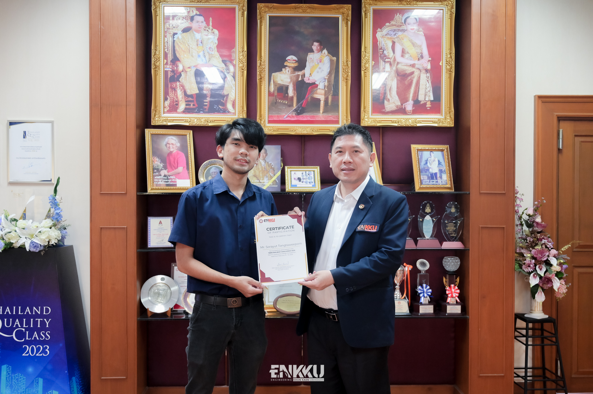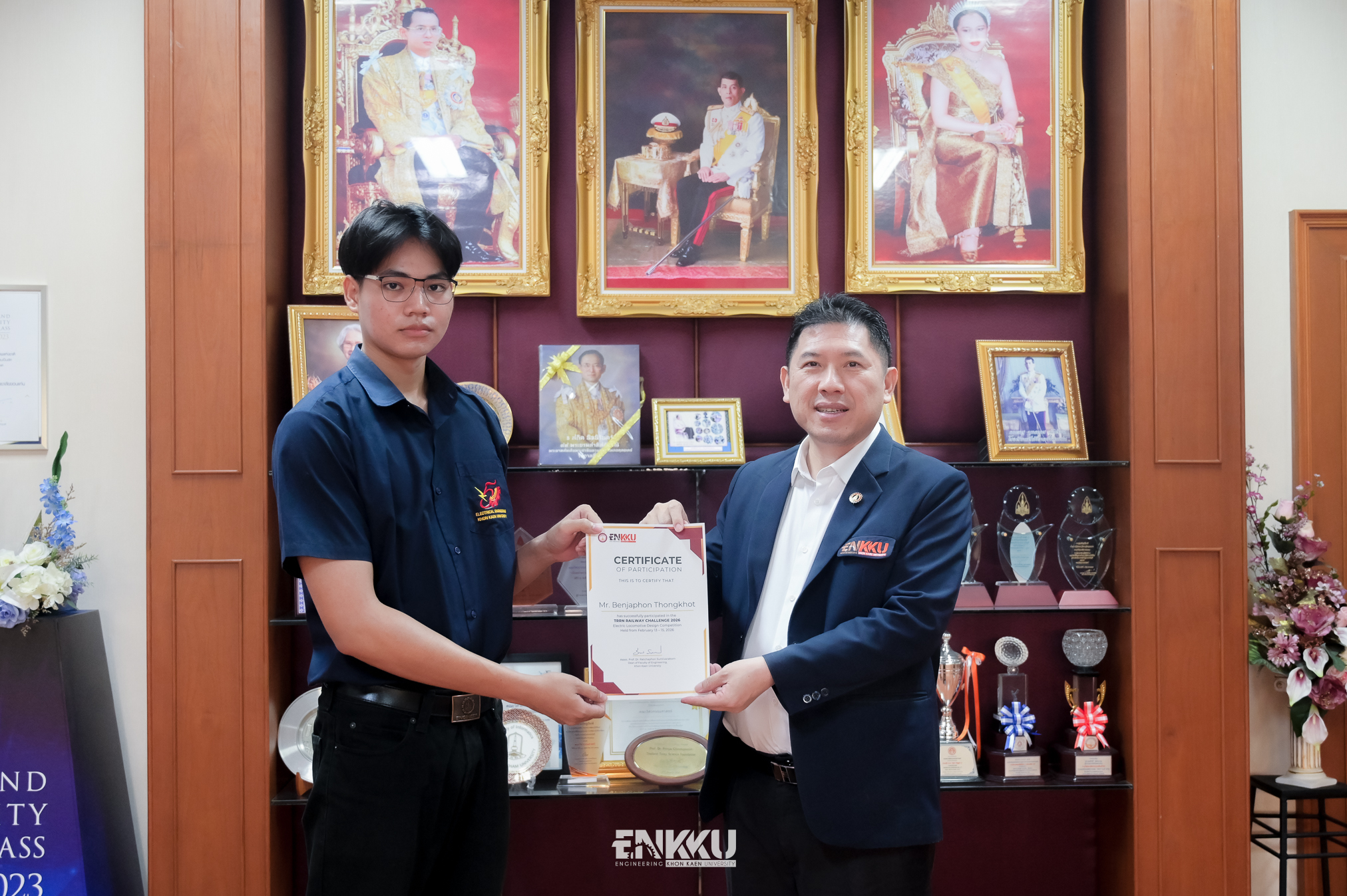 รศ.ดร.รัชพล สันติวรากร คณบดีคณะวิศวกรรมศาสตร์ ได้ให้เกียรติมอบเกียรติบัตรแสดงความยินดีแก่นักศึกษาผู้เข้าร่วมโครงการ พร้อมกล่าวชื่นชมในความมุ่งมั่นว่า การส่งเสริมให้นักศึกษาลงมือปฏิบัติจริงในเวทีระดับสากลเช่นนี้ เป็นหัวใจสำคัญของการสร้าง “วิศวกรยุคใหม่” ที่ไม่ได้มีเพียงความรู้ในตำรา แต่มีความคล่องตัว (Agility) และสามารถประยุกต์ใช้เทคโนโลยีเพื่อตอบโจทย์อุตสาหกรรมระบบขนส่งทางรางที่กำลังพัฒนาอย่างก้าวกระโดด ซึ่งสอดคล้องกับแนวทางการสร้างวิศวกรรมระดับโลกสำหรับทุกคน