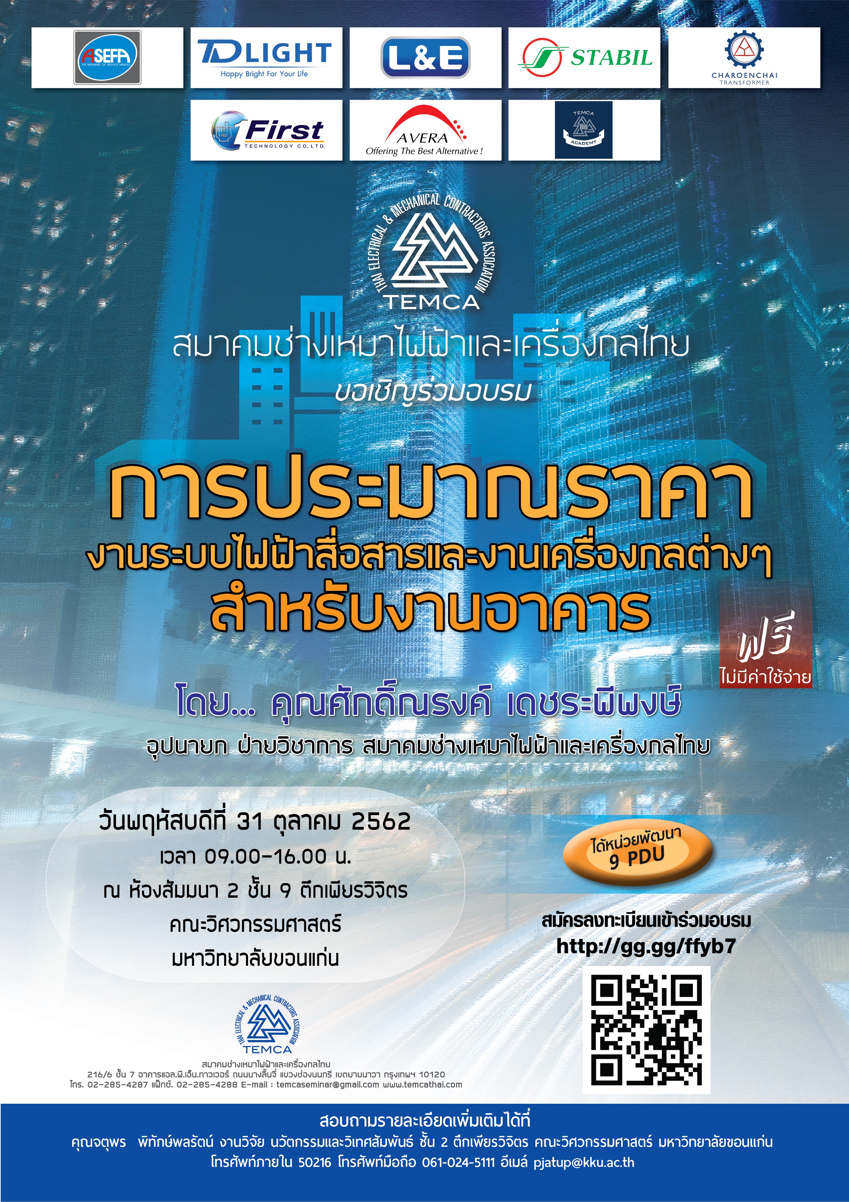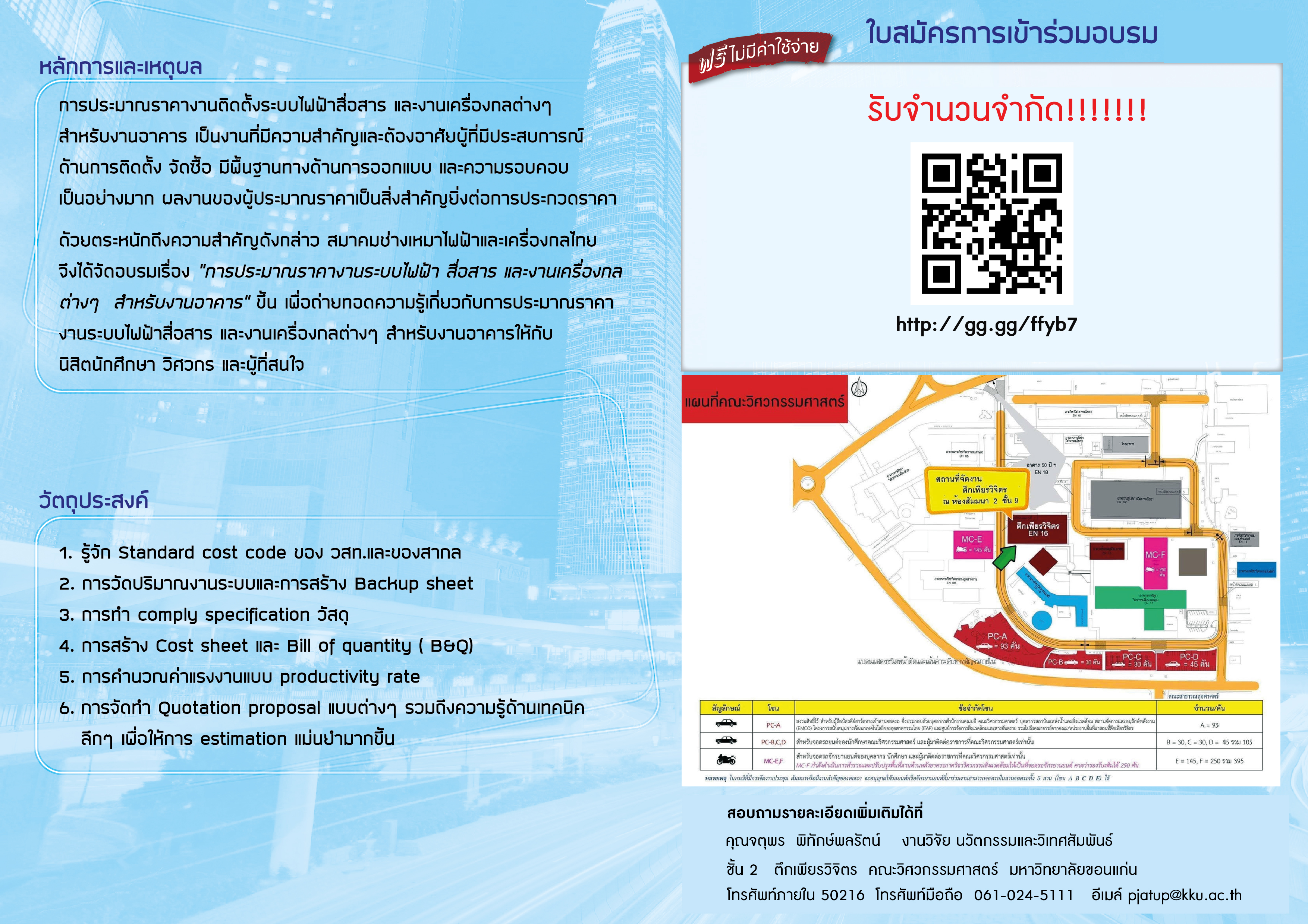 [[ประชาสัมพันธ์]] การอบรม “การประมาณราคางานระบบไฟฟ้าสื่อสารและงานเครื่องกลต่างๆ สำหรับงานอาคาร”