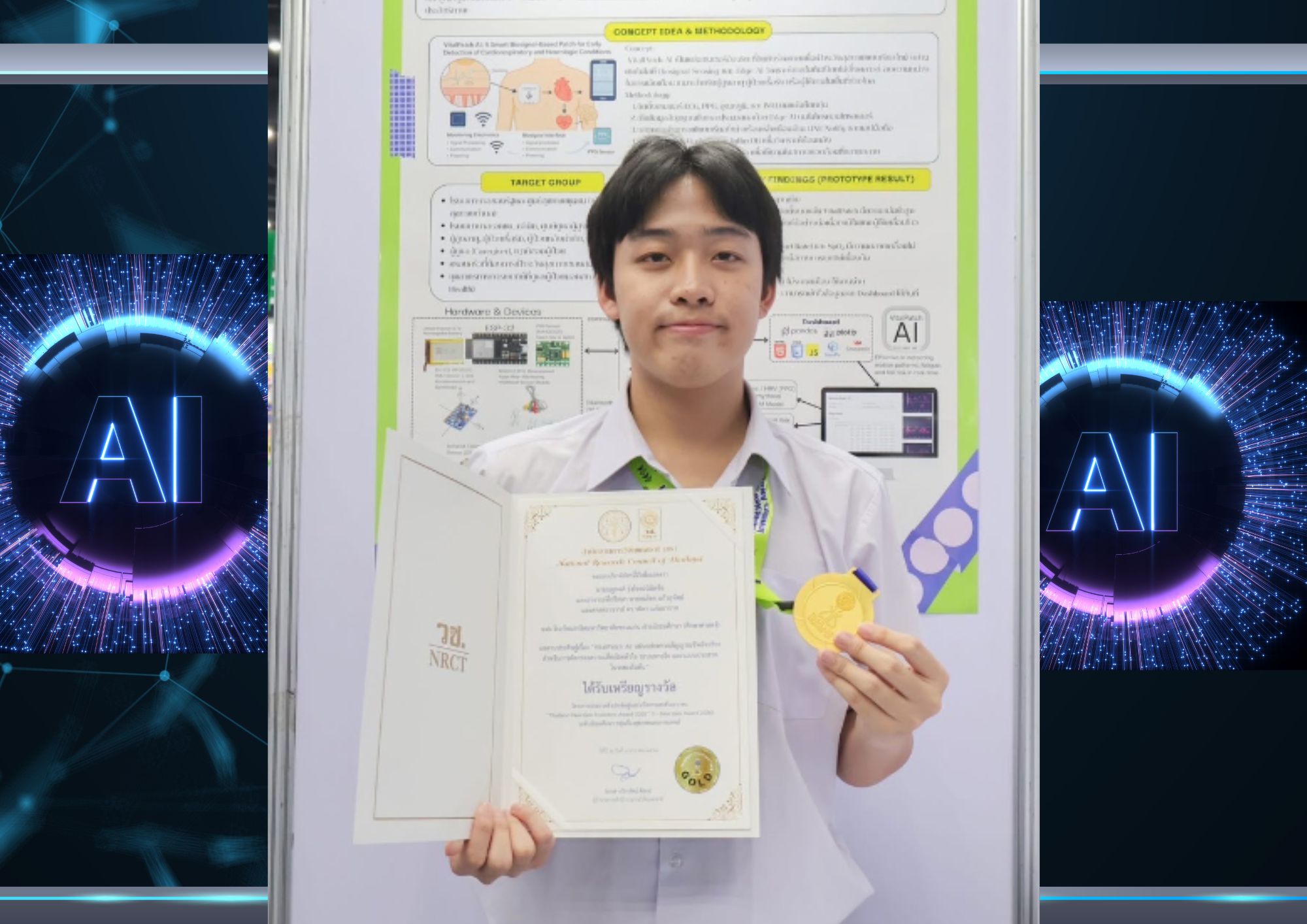 วงการนวัตกรรมสุขภาพต้องจับตา เมื่อ นายณฐพงศ์ รุ่งโรจน์นิมิตชัย นักเรียนจาก โรงเรียนสาธิตมหาวิทยาลัยขอนแก่น ฝ่ายมัธยมศึกษา (ศึกษาศาสตร์) สร้างสรรค์ผลงานนวัตกรรม “VitalPatch AI” แผ่นแปะตรวจสัญญาณชีพอัจฉริยะ ที่ผสานเทคโนโลยีปัญญาประดิษฐ์ (AI) เพื่อการคัดกรองความเสี่ยงของ โรคหัวใจ ระบบทางเดินหายใจ และระบบประสาท ได้อย่างแม่นยำตั้งแต่ระยะเริ่มต้น