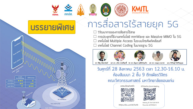 [ประชาสัมพันธ์] โครงการบรรยายพิเศษ เรื่อง “การสื่อสารไร้สายยุค 5G” ?? ประชาสัมพันธ์โครงการบรรยายพิเศษ ?? ขอเชิญผู้สนใจเข้าร่วมฟังการบรรยาย เรื่อง “การสื่อสารไร้สายยุค 5G” ⭐ นำทีมวิทยากร โดย รองศาสตราจารย์ลัญฉกร วุฒิสิทธิกุลกิจ จากจุฬาลงกรณ์มหาวิทยาลัย ?ในวันศุกร์ที่ 28 สิงหาคม 2563 เวลา 12.30-16.10 น. On Site : ห้องสัมมนา 2 ชั้น 9...