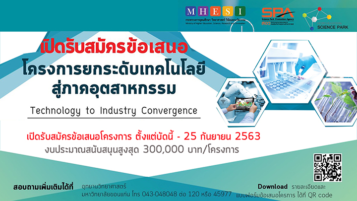 ? ? ประชาสัมพันธ์ ? ? ??? ขอเชิญชวนอาจารย์/นักวิจัย สมัครเข้าร่วมโครงการยกระดับเทคโนโลยีสู่ภาคอุตสาหกรรม (Technology to Industry Convergence) เปิดรับสมัครข้อเสนอโครงการ ตั้งแต่บัดนี้ จนถึง 25 กันยายน 2563 นี้ งบประมาณสนับสนุนสูงสุด 300,000 บาท/โครงการ . ?? ลักษณะโครงการ ✅ สนับสนุนการใช้ประโยชน์งานวิจัย เทคโนโลยีหรือองค์ความรู้ ที่ยังไม่เคยได้รับการสนับสนุนหรือออกสู่เชิงพาณิชย์มาก่อน ให้ได้รับโอกาสในการพัฒนางานวิจัยสู่ระดับที่ใกล้เคียงกับการใช้งานจริง ✅ การวางแผนและวิเคราะห์แนวทางในการต่อยอดทางธุรกิจ (Industry Convergence) รวมถึงการมองหาภาคเอกชนที่จะมาใช้ประโยชน์งานวิจัยในอนาคต . ?? การสนับสนุน...