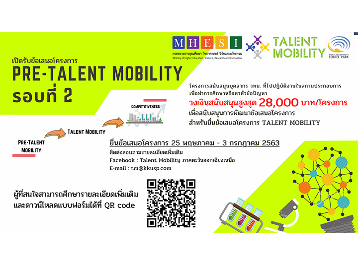 [[ประชาสัมพันธ์]] เปิดรับข้อเสนอโครงการ Pre-Talent Mobility ประจำปีงบประมาณ 2563 รอบที่ 2 (ตั้งแต่วันนี้ – 3 กรกฎาคม 2563) ?? ? ประกาศ เปิดรับ รอบ 2 แล้วจ้า รับจำนวนจำกัด !! เปิดรับข้อเสนอโครงการ Pre-Talent Mobility ประจำปีงบประมาณ 2563 รอบที่ 2 (ตั้งแต่วันนี้ –...