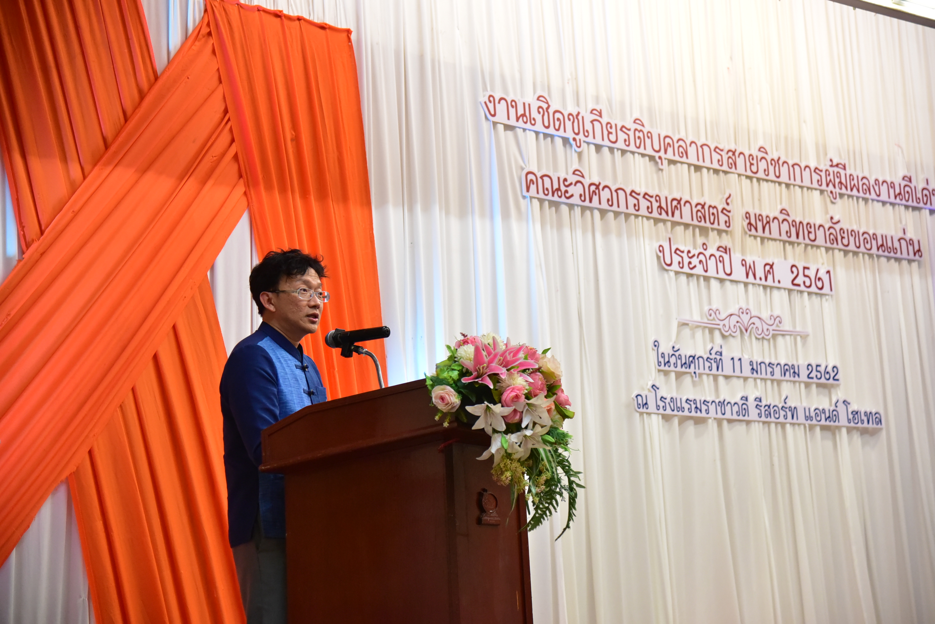 คณะวิศวกรรมศาสตร์ มหาวิทยาลัยขอนแก่น จัด “งานเชิดชูเกียรติบุคลากรสายวิชาการผู้มีผลงานดีเด่นประจำปี พ.ศ. 2561” ในวันศุกร์ที่ 11 มกราคม 2562 ณ โรงแรมราชาวดี รีสอร์ท แอนด์ โฮเทล โดยมีท่านคณบดีคณะวิศวกรรมศาสตร์ ศาสตราจารย์ ดร.อภิรัฐ ศิริธราธิวัตร กล่าวเปิดงาน และ ผู้ช่วยศาสตราจารย์ดร.รัตมณี นันทสาร ผู้ช่วยคณบดีฝ่ายกายภาพและสิ่งแวดล้อม กล่าวรายงานและวัตถุประสงค์ของการจัดงานในครั้งนี้ โดยมีวัตถุประสงค์เพื่อเป็นการแสดงความขอบคุณ เชิดชูเกียรติบุคลากรของคณะผู้มีผลงานดีเด่นด้านต่างๆ สร้างทัศนคติที่ต้องให้บุคลากรตระหนังถึงคุณค่า ความีเกียรติและศักดิ์ศรีของงานที่ทำ...