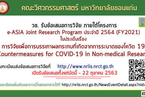 [[ประชาสัมพันธ์]] วช เปิดรับสมัครข้อเสนอการวิจัยภายใต้โครงการ e-ASIA Joint Research Program (e-ASIA JRP) ประจำปี 2564 (FY2021) ในประเด็นเรื่อง “การวิจัยเพื่อการบรรเทาผลกระทบที่เกิดจากการระบาดของโควิด 19