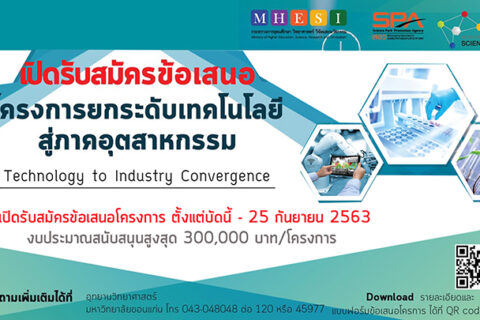 [[ประชาสัมพันธ์]] เปิดรับสมัครข้อเสนอโครงการยกระดับเทคโนโลยีสู่ภาคอุตสาหกรรม (Technology to Industry Convergence)