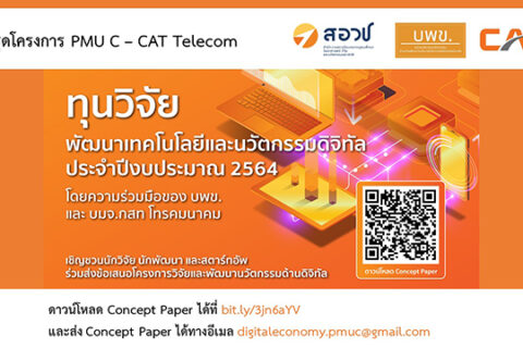 [ประชาสัมพันธ์] ทุนวิจัย พัฒนาเทคโนโลยีและนวัตกรรมดิจิทัล ประจำปีงบประมาณ 2564 โดยความร่วมมือของ บพข. และ บมจ. กสท โทรคมนาคม