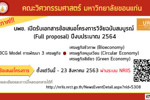 [ประชาสัมพันธ์] บพข. ประกาศรับเอกสารข้อเสนอโครงการวิจัยฉบับสมบูรณ์ (Full proposal) ปีงบประมาณ 2564