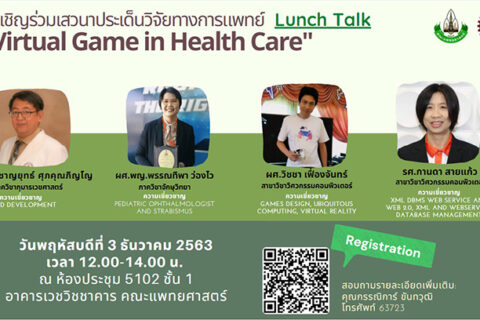 [ประชาสัมพันธ์] ขอเชิญเข้าร่วมฟังการเสวนาประเด็นวิจัยทางการแพทย์ในโครงการ Lunch Talk หัวข้อ “Virtual Game in Health Care”