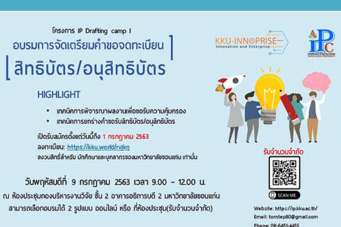 [[ประชาสัมพันธ์]] การอบรม IP Drafting Camp I : การจัดเตรียมคำขอจดทะเบียนสิทธิบัตร/อนุสิทธิบัตร ด้วยศูนย์ทรัพย์สินทางปัญญา มข. กำหนดจัดอบรม “โครงการ IP Drafting camp...