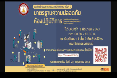 [[ประชาสัมพันธ์]] ขอเชิญเข้าร่วมการอบรมเชิงปฏิบัติการ เรื่อง มาตรฐานความปลอดภัยห้องปฏิบัติการ ภายใต้โครงการยกระดับมาตรฐานความปลอดภัยในห้องปฏิบัติการ คณะวิศวกรรมศาสตร์ ขอเชิญเข้าร่วมการอบรมเชิงปฏิบัติการ เรื่อง มาตรฐานความปลอดภัยห้องปฏิบัติการ ภายใต้โครงการยกระดับมาตรฐานความปลอดภัยในห้องปฏิบัติการ คณะวิศวกรรมศาสตร์ ในวันจันทร์ที่ 1 มิถุนายน 2563...