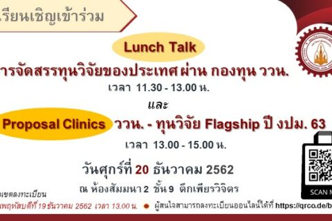 [ประชาสัมพันธ์] ขอเชิญเข้าร่วม Lunch Talk และ Proposal Clinics