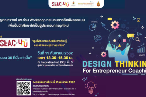 ?? ประชาสัมพันธ์ ?? ขอเรียนเชิญคณาจารย์ มหาวิทยาลัยขอนแก่น เข้าร่วมโครงการ “Design Thinking for Entrepreneur Coaching” Workshop กระบวนการคิดเชิงออกแบบ เพื่อปั้นนักศึกษาให้เป็นผู้ประกอบการยุคใหม่ ?ในวันพฤหัสบดีที่ 19 กันยายน...