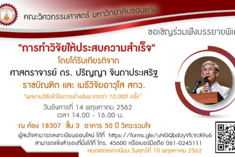 ประชาสัมพันธ์ การบรรยายพิเศษ ในหัวข้อเรื่อง “การทำวิจัยให้ประสบความสำเร็จ”