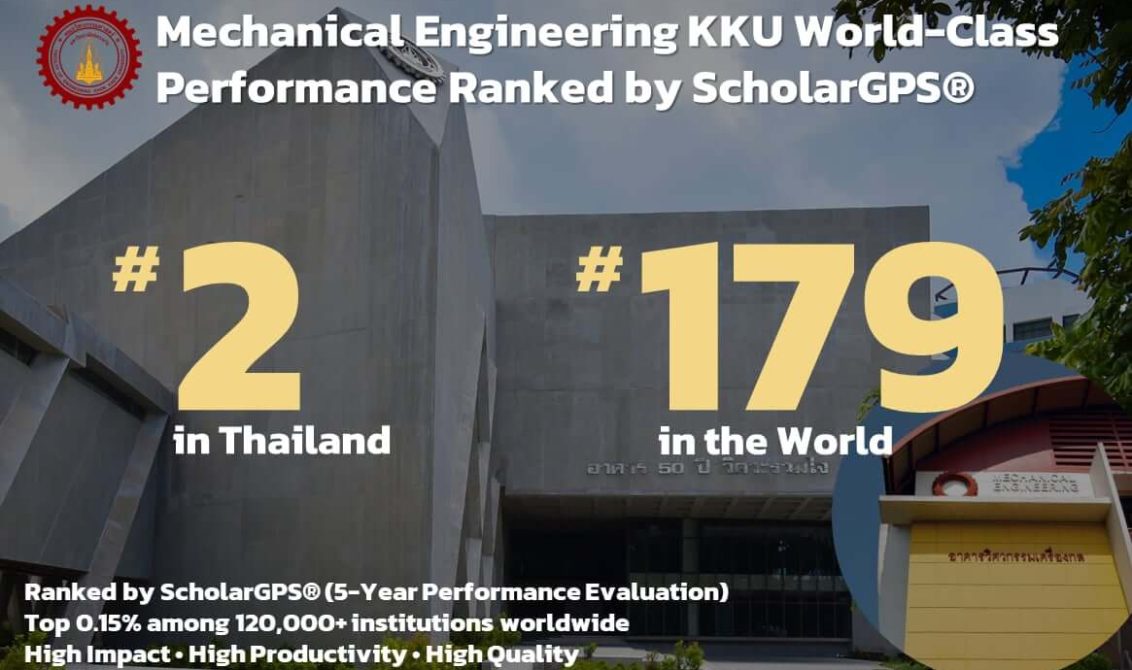 สาขาวิชาวิศวกรรมเครื่องกล คณะวิศวกรรมศาสตร์ มหาวิทยาลัยขอนแก่น ได้รับการจัดอันดับคุณภาพทางวิชาการจาก ScholarGPS® (5-Year Performance Evaluation) ดังนี้: